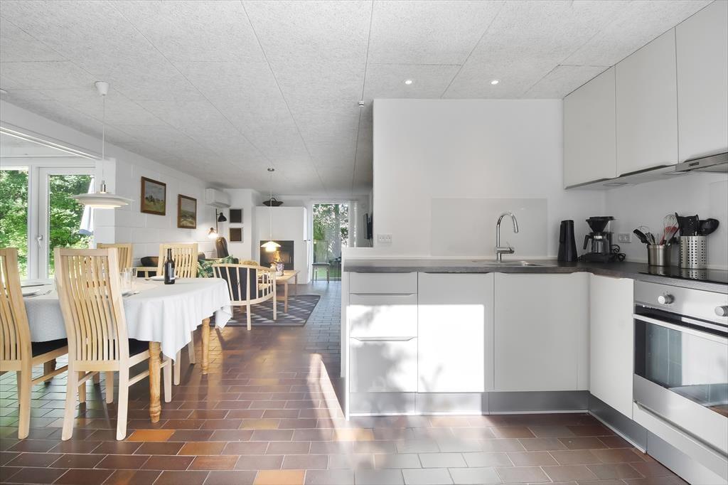 Die schöne Lage ist allerdings nicht die einzige Qualität, mit der das Ferienhaus zu überzeugen weiß. Das solide Bauwerk wurde zuletzt im Jahr 2018 einer umfassenden Renovierung unterzogen. Dies wird unter anderem an der modernen Küche ersichtlich, die offen mit dem Wohnraum verbunden ist. Im Wohnraum gehört ein eingemauerter Kaminofen zu den Details, die für viel Gemütlichkeit und Stimmung sorgen. Dank der großen Fensterpartien werden Sie während entspannter Stunden auf den Sofas nicht nur mit einem schönen Tageslichteinfall, sondern auch mit einer ansprechenden Aussicht in den grünen Garten verwöhnt. Nachdem Sie sich am Abend im Badezimmer frisch gemacht haben, begeben Sie sich in zwei Schlafräumen zur Ruhe. Einer der Schlafräume beinhaltet ein Doppelbett. Im anderen stehen zwei Einzelbetten für Sie bereit. Im Nebengebäude des Ferienhauses steht Ihnen neben einer Waschmaschine auch eine Gefriertruhe zur Verfügung, in der Sie Ihre selber gefangenen Fische einfrieren können.