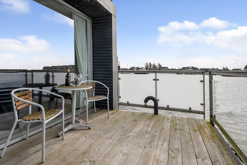 Auch unter freiem Himmel, auf den Sonnendecks, können Sie Ihre Urlaubstage auf dem Wasser in vollen Zügen genießen. Sowohl auf dem Erdgeschoss als auch auf dem Sonnendeck des ersten Stocks können Sie den Panoramablick bewundern, da sich von hier aus ein schöner Überblick über den Hafen und auf die wunderschönen Sonnenuntergänge über dem Fjord bietet.