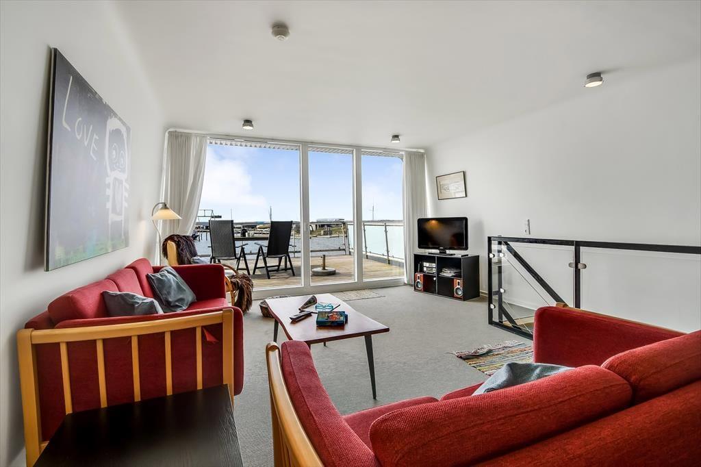 Urlaubstage auf einem Hausboot verleihen dem nächsten Dänemarkurlaub eine neue Dimension. Hier können Sie zum leisen Schwappen der Wellen aufwachen, den gesamten Tag hindurch frische Seeluft riechen und einen herrlichen Ausblick über das Wasser genießen. Bei diesem Hausboot, das fest verankert im Hafen von Bork Havn liegt, handelt es sich um ein stabil gebautes Mietobjekt mit zwei Etagen, das eine Wohnfläche von 105 m² bietet. Die Atmosphäre ist luftig und hell und die großen Fensterpartien verleihen dem Boot einen schönen Tageslichteinfall. Im Erdgeschoss können Sie es sich in der Küche am Esstisch gemütlich machen. Im Obergeschoss lockt das Sofa in der Nähe des Kaminofens und mit attraktiver Aussicht. Die drei vorhandenen Schlafräume verteilen sich auf beide Wohnebenen. Die beiden Badezimmer, von denen eines mit einem Whirlpool und das andere mit einer Sauna begeistern, sind beide im Erdgeschoss platziert. Gegen Zahlung einer Gebühr in Höhe von 400,- DKK können Sie gerne Ihren Hund mit auf das Hausboot bringen.