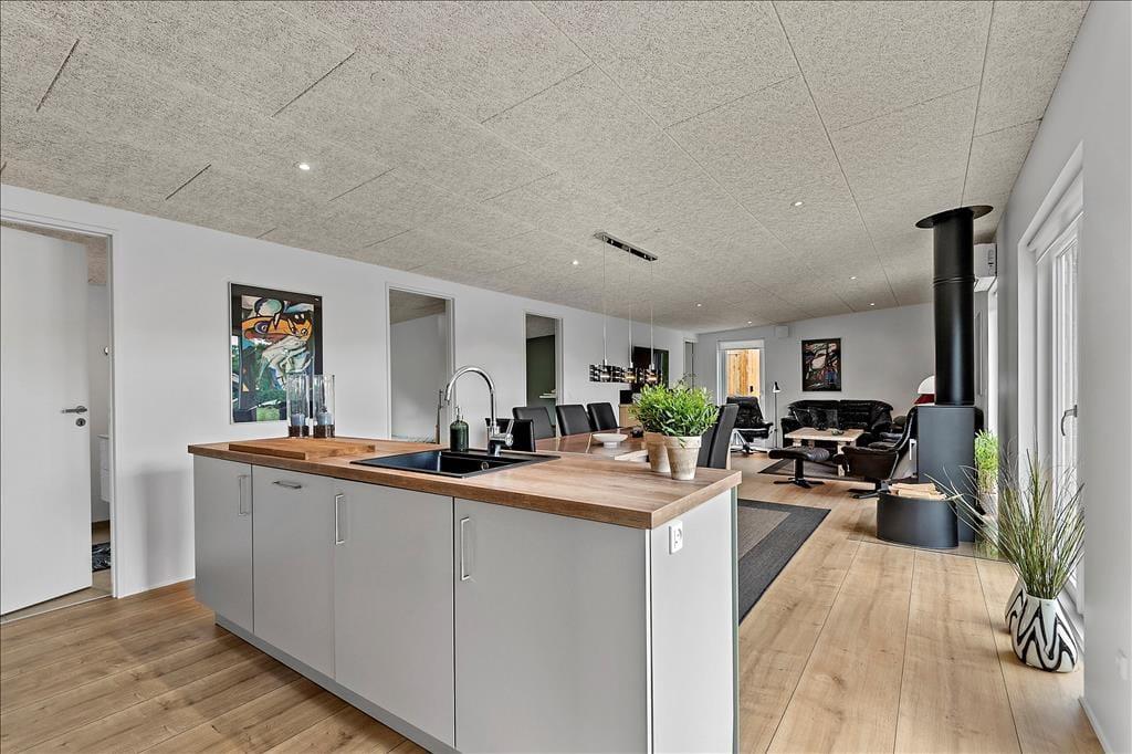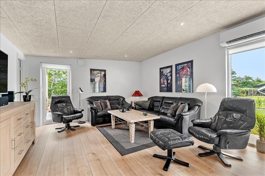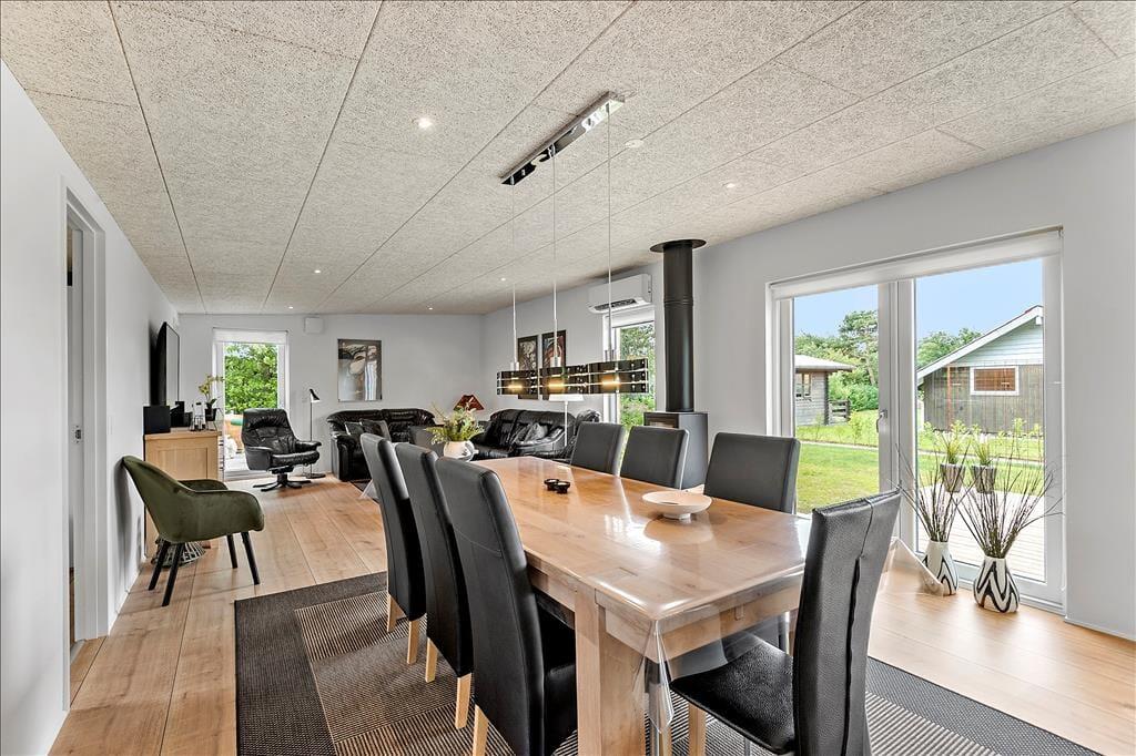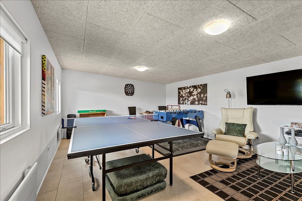 Das moderne Ferienhaus wurde im Jahr 2021 aus Qualitätsmaterialien erbaut. Eine stilsichere Möblierung bietet Ihnen einen attraktiven und komfortablen Rahmen für erholsame Urlaubstage. Mit einer Wohnfläche von 130 m² wird es nicht an Bewegungsfreiheit mangeln. Tolle Details sind uner Anderem die Badewanne, der behaglich knisternden Kaminofen und insgesamt vier Flachbild-TVs. Zur Wohnfläche zählen ein ansprechender Wohnraum mit einer offenen Küche, zwei Badezimmer und drei Schlafräume. Der Aktivitätsraum lädt darüber hinaus mit seiner Tischtennisplatte und dem Tischkicker zu aktiven und vergnügten Stunden ein. Dank des doppelten Schlafsofas kann der Aktivitätsraum nachts als Schlafraum für zwei Personen dienen.