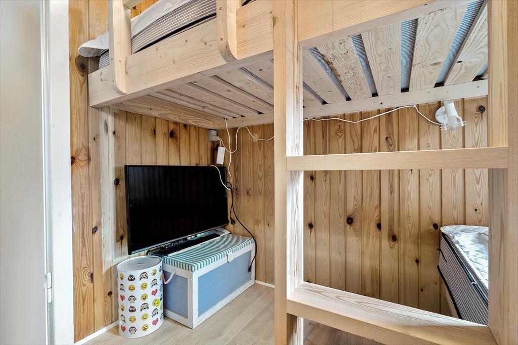 Das Ferienhaus mit einer Wohnfläche von 68 m² bietet eine wohldurchdachte Raumaufteilung für sechs Personen. Die Wohnatmosphäre ist hell und einladend. Dies gilt nicht nur für den Wohnraum, in dem ein Kaminofen in der Nähe des Sofas für angenehme Wärme sorgt. Falls Sie nicht gerade in der offenen Küche die Mahlzeiten zubereiten oder Gesellschaftsspiele am Esstisch spielen, bietet der Flachbild-TV Unterhaltung und Abwechslung. Die Küche bietet Ihnen alles Notwendige. Ein Geschirrspüler übernimmt den lästigen Abwasch. Das Badezimmer mit Duschnische und Fußbodenheizung ist geräumig. Die Schlafplätze verteilen sich auf drei Schlafzimmer, von denen zwei mit einem Doppelbett eingerichtet sind. Im dritten Zimmer steht ein über Eck angebrachtes Hochbett für Sie bereit.