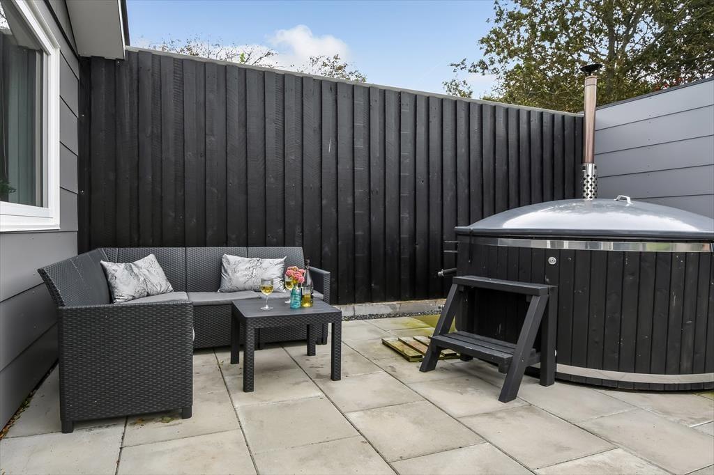 Das Haus liegt im Vester Fælled-Flügel in Bork Havn, herrlich ungestört, aber dennoch in der Nähe der belebten Hafenpromenade von Bork Havn. Die Terrasse des Hauses ist das Erste, was einem begegnet, sobald man das Auto geparkt hat. Die Terrasse ist nach Süden ausgerichtet und offen, das heißt – hier gibt es volle Sonnenpower. Draußen gibt es sowohl Essbereiche und gemütliche Ecken als auch einen Grill, und wenn das Wetter es zulässt, verfügt das Haus auch über eine schöne und einladende Badezuber. Vom Inneren des Hauses aus gibt es mehrere Ausgänge zur Terrasse, sodass Sie Ihre Mahlzeiten bequem im Freien servieren und gleichzeitig den Überblick über die ganze Familie behalten können.