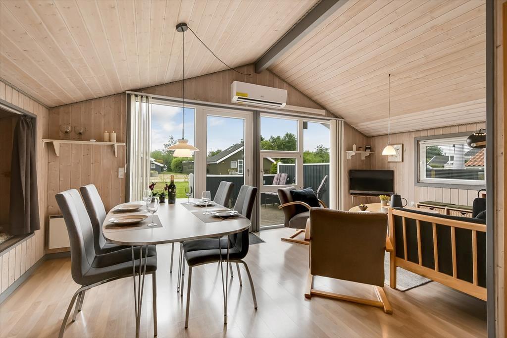 Wenn du das Ferienhaus in Bork Hytteby 39 betrittst, empfängt dich eine entspannte und heimelige Atmosphäre, bei der auf jedes Detail geachtet wurde. Helle Holzverkleidungen und ein offener Grundriss schaffen ein warmes Wohngefühl, während große Fensterflächen das Licht hereinlassen und dich mit der Natur draußen verbinden. Im offenen Wohnbereich kannst du und dein Lieblingsmensch es euch nach einem ausgedehnten Spaziergang am Fjord auf dem Sofa bequem machen – vielleicht mit einem guten Buch und einer Tasse heißem Kakao in Reichweite. Die Küche ist praktisch und gemütlich zugleich, und gemeinsame Mahlzeiten lassen sich hier ganz leicht zubereiten. Nach einem erlebnisreichen Tag zieht ihr euch in die Schlafbereiche des Ferienhauses zurück und lasst die Ruhe einkehren, während draußen langsam die Dunkelheit hereinbricht.