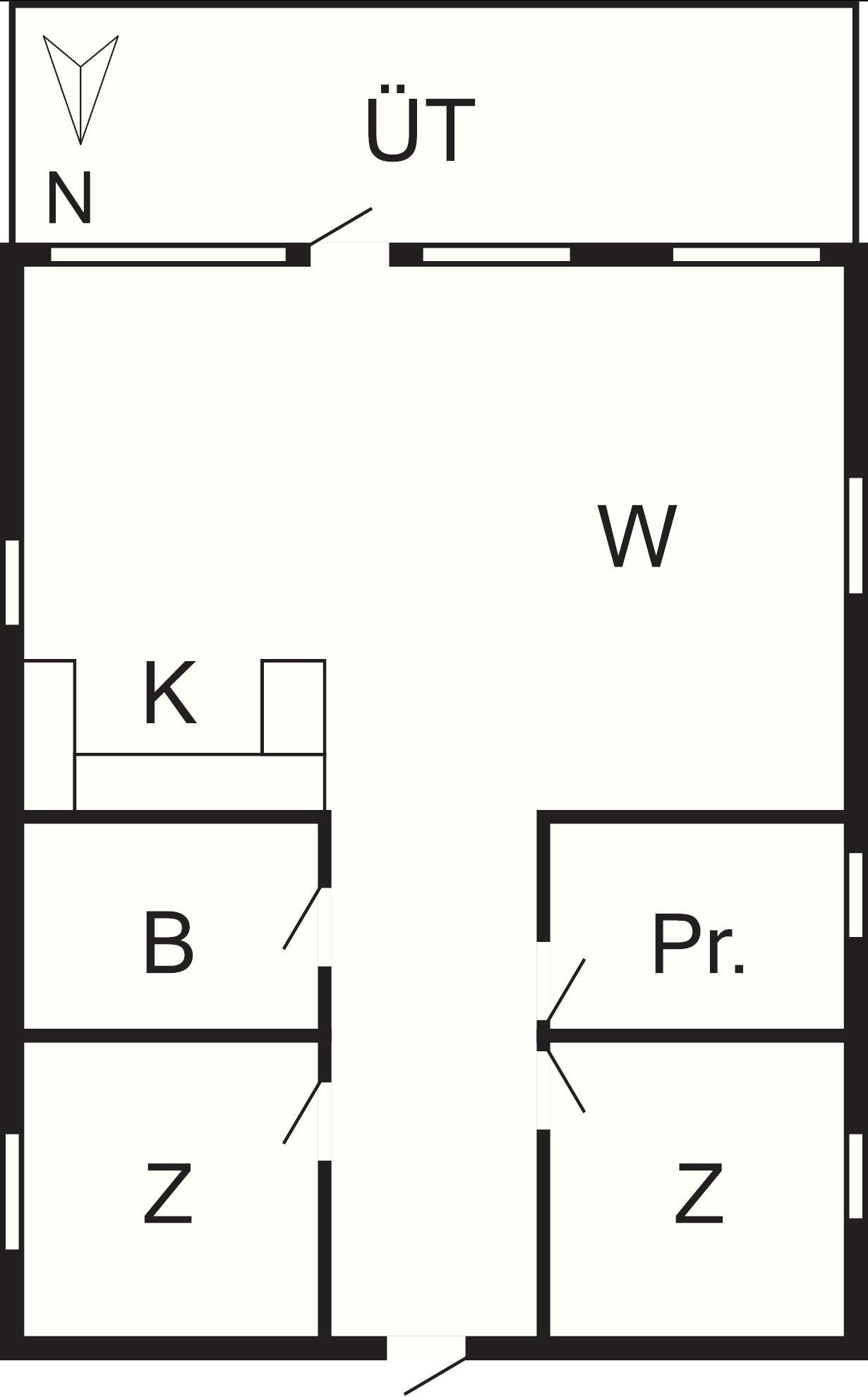 Bad: WC, Waschb., Dusche, Fußbodenheiz.