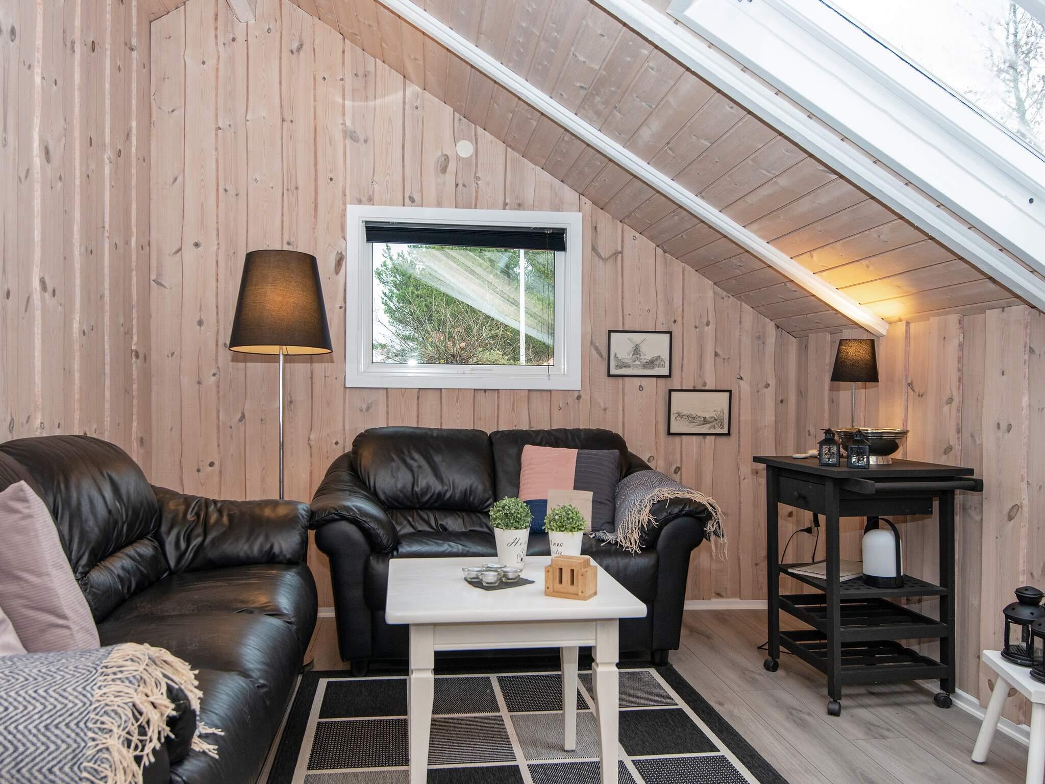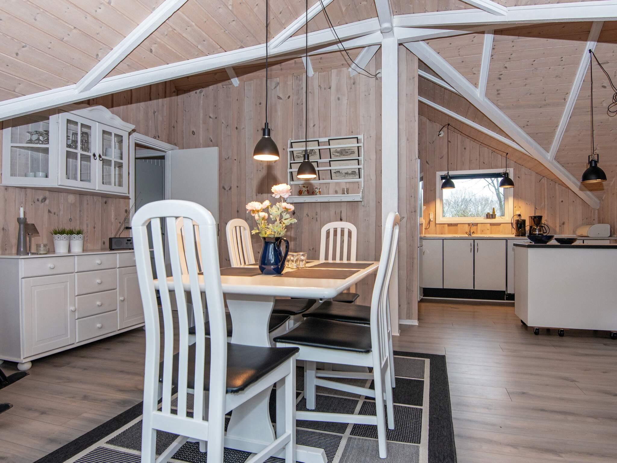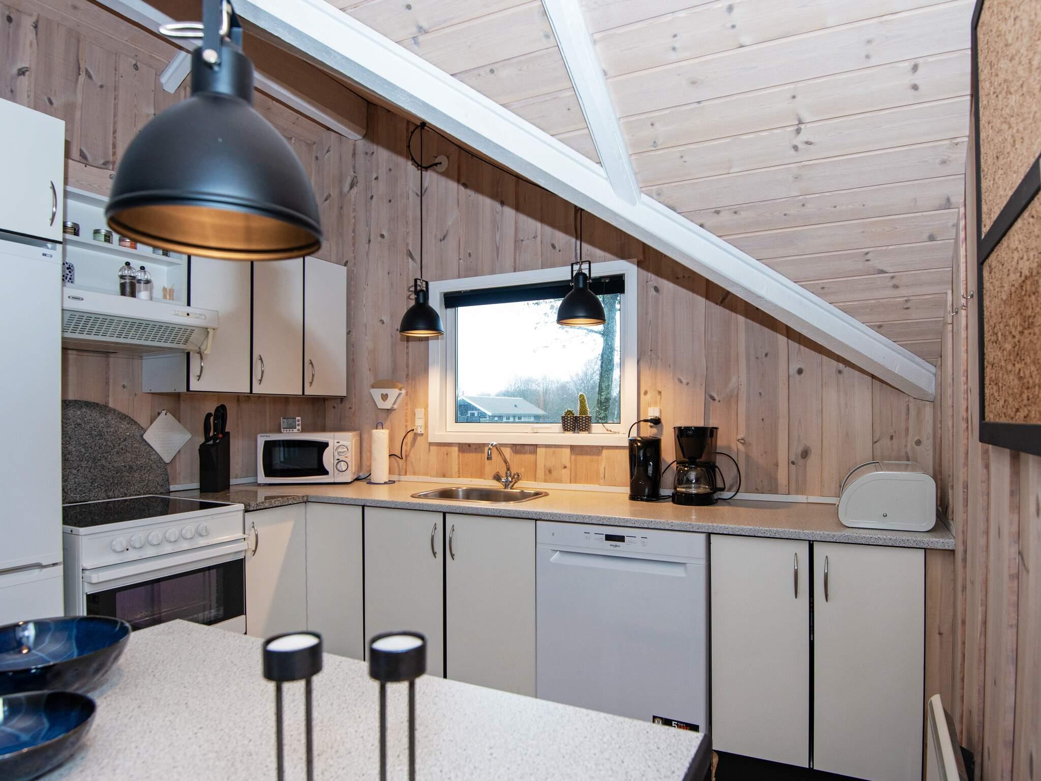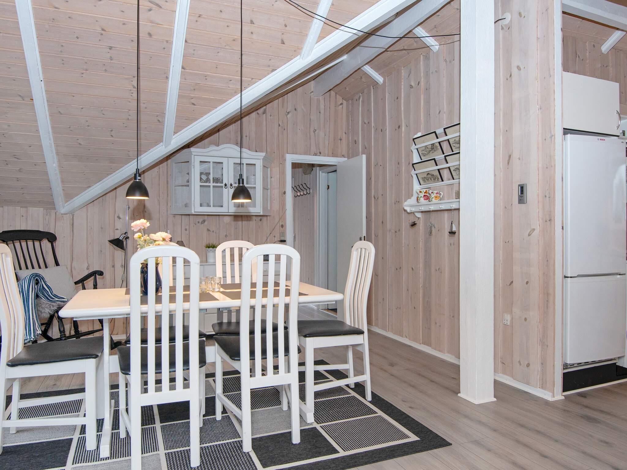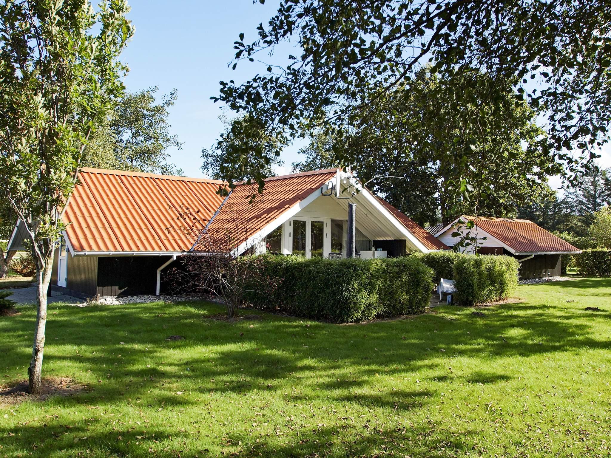Im Haus gibt es einen offenen Küchen-/Wohnbereich für das Familienleben. Vom Haus hat man Zugang zu einer schönen Terrasse und weiter zum gut abgeschirmten Naturgrundstück mit Rasenfläche für spielende Kinder. Das Ferienhaus liegt schön ruhig am Ende einer kleinen Sackgasse in einem Ferienhausgebiet. Gleich gegenüber findet man eine große, offene Fläche mit einem gemeinschaftlichen Spielplatz.