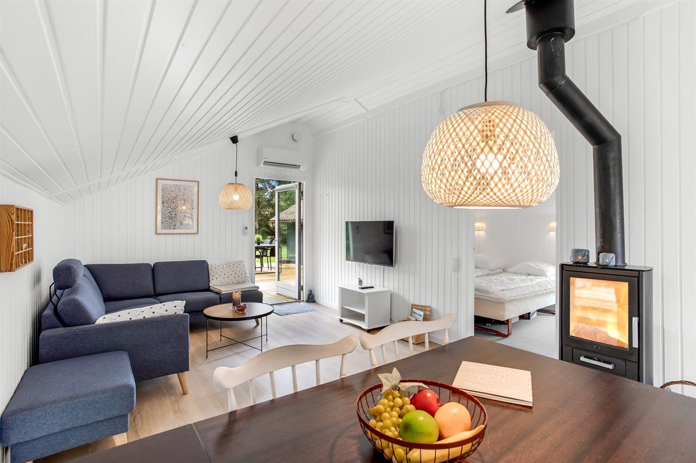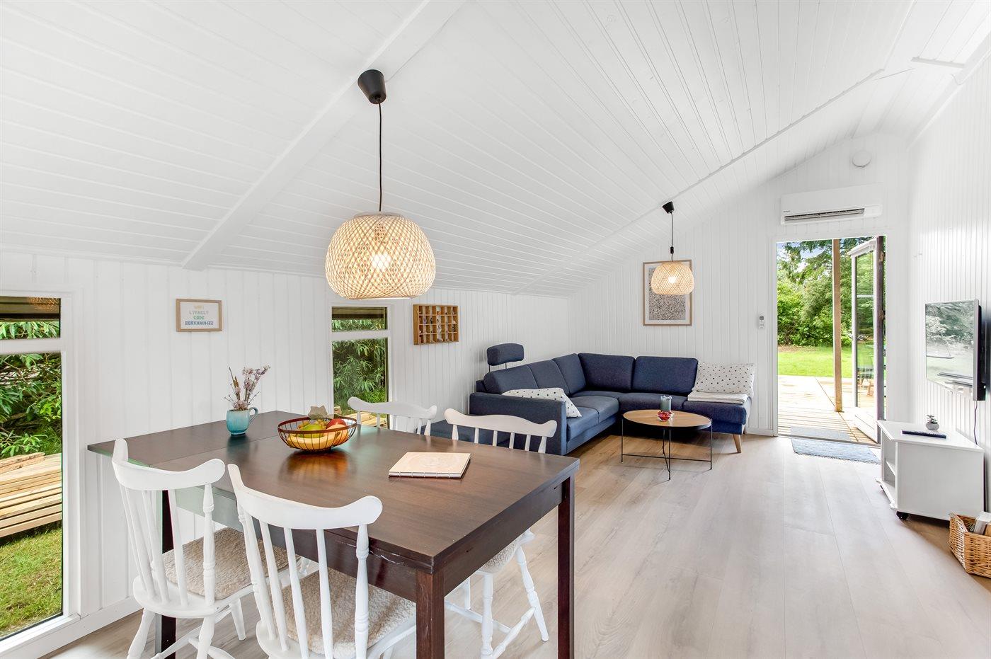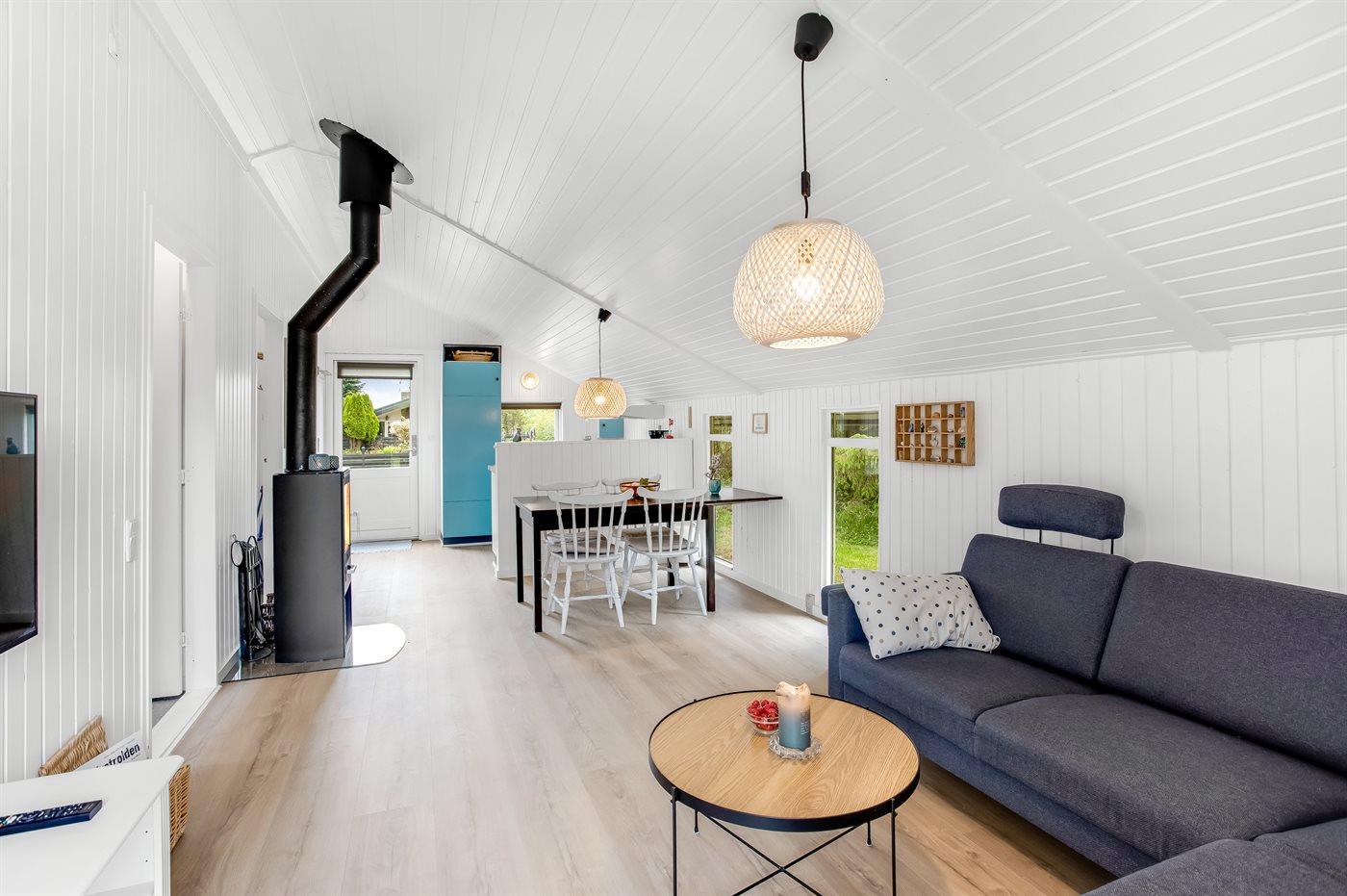 Die Ferienunterkunft liegt auf einem 1000 m² großen Naturgrundstück. Das Grundstück ist eingezäunt. Die Entfernung zum Meer beträgt 7100 m. Die Entfernung zum Fjord beträgt 800 m. Die nächste Einkaufsmöglichkeit liegt 1200 m entfernt. Es steht ein 24 m² Terrassenareal zur Verfügung. Außerdem gibt es 12 m² überdachte Terrasse. Geräteraum. Parkplatz auf dem Grundstück.