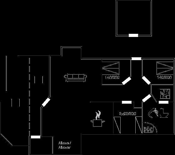 Die Schlafplätze verteilen sich auf 3 Schlafräume. 4 Schlafplätze in Doppelbetten. 2 Schlafplätze in Einzelbetten.