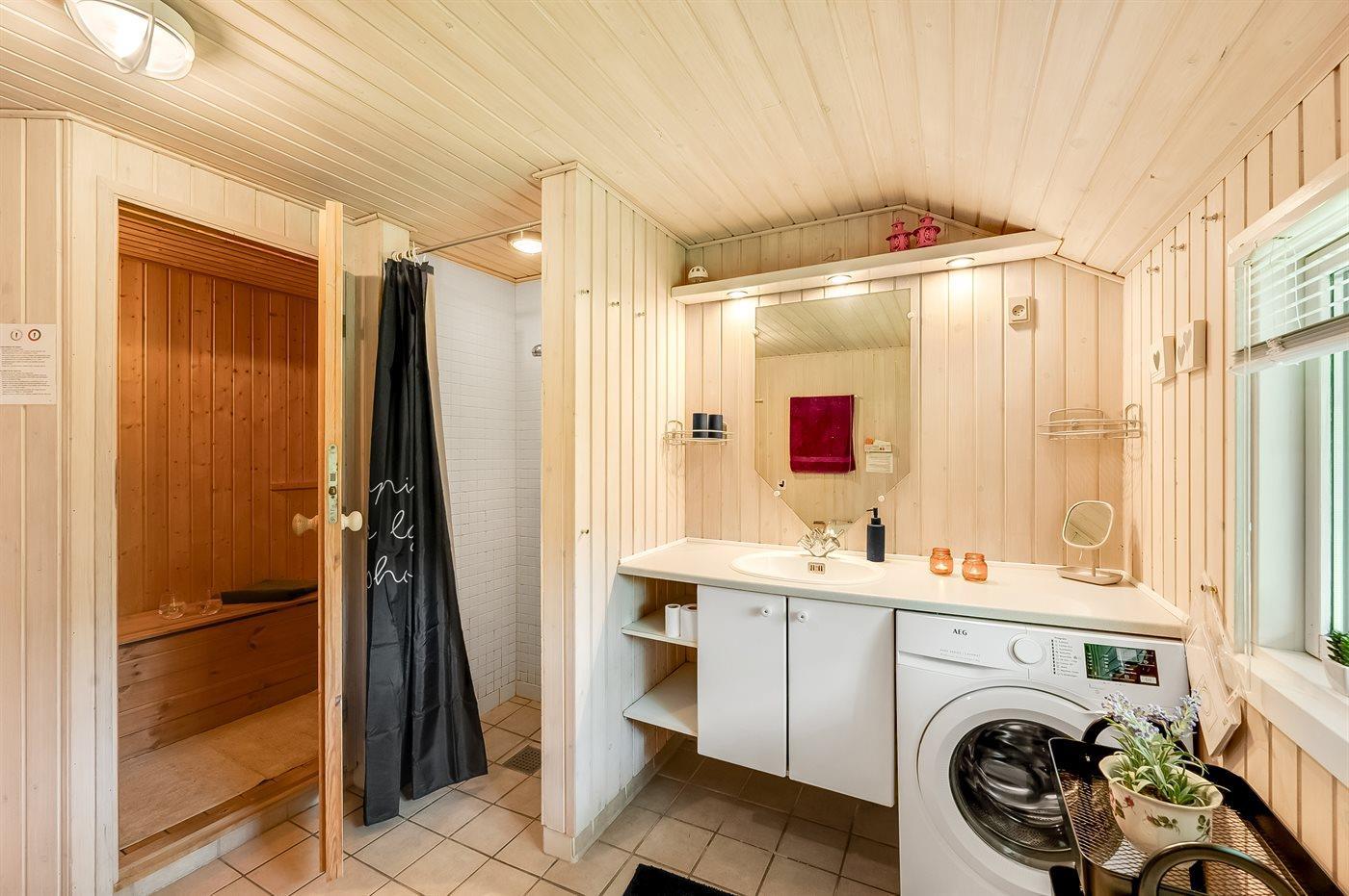 Es gibt 1 Badezimmer mit Duschnische und 1 Toilette.. Fußbodenheizung in 1 Badezimmer. Es steht eine Sauna zur Verfügung in der Sie sich so richtig entspannen können.