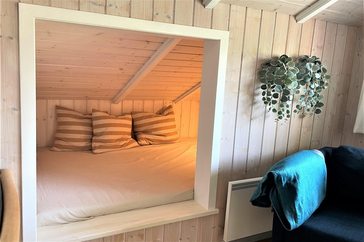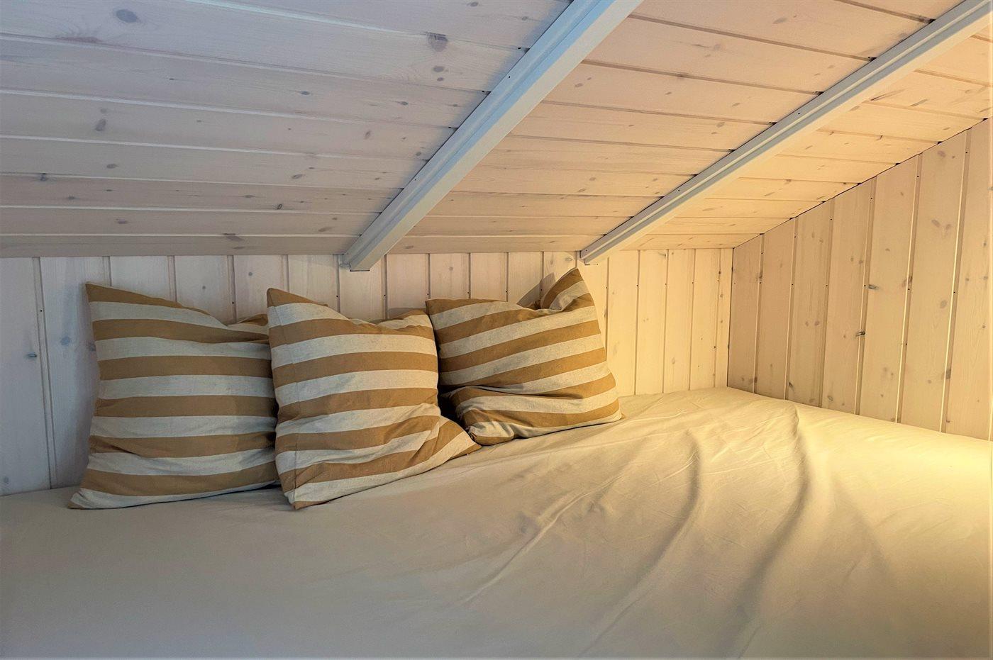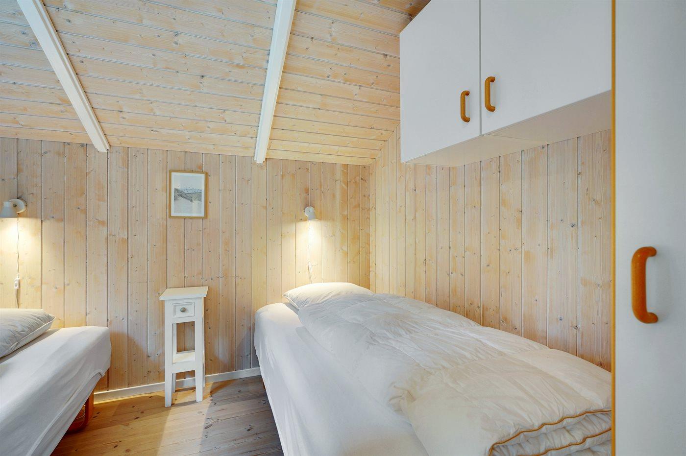 Die Schlafplätze verteilen sich auf 2 Schlafräume. 2 Schlafplätze in einem Doppelbett. 2 Schlafplätze in Einzelbetten. Ferner steht ein Kinderbett zur Verfügung.