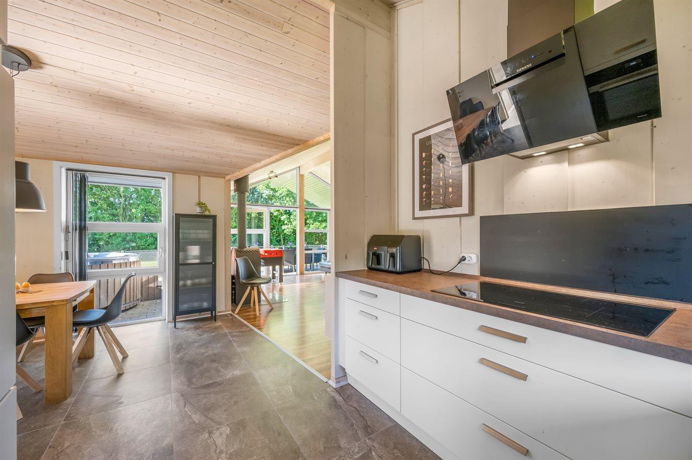 Modernes Ferienhaus in ruhiger Lage nahe Natur und Fjord, ideal für Familien mit Sauna und Whirlpool.