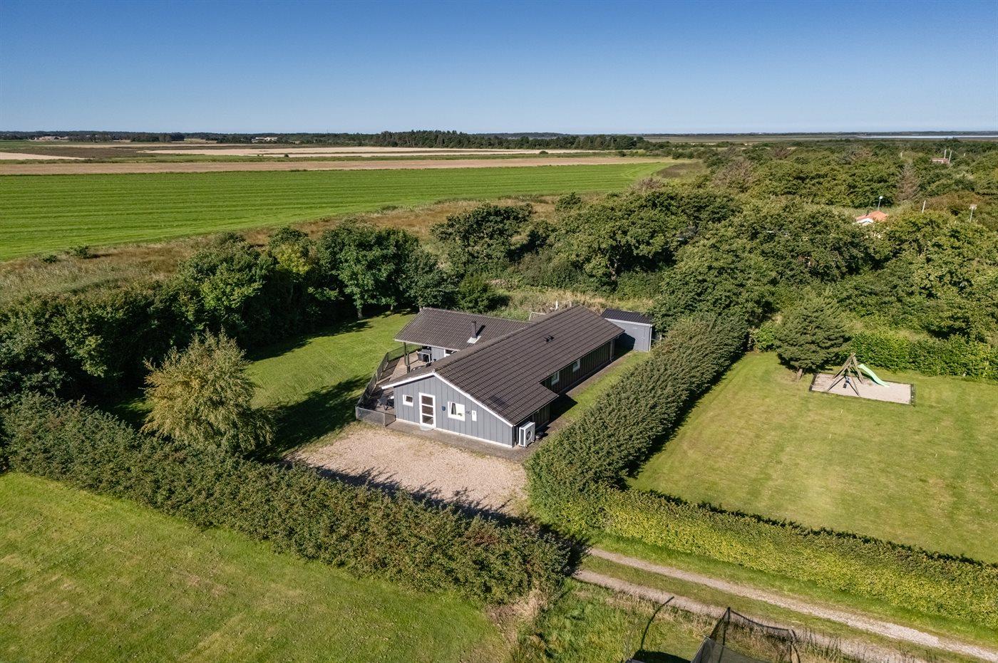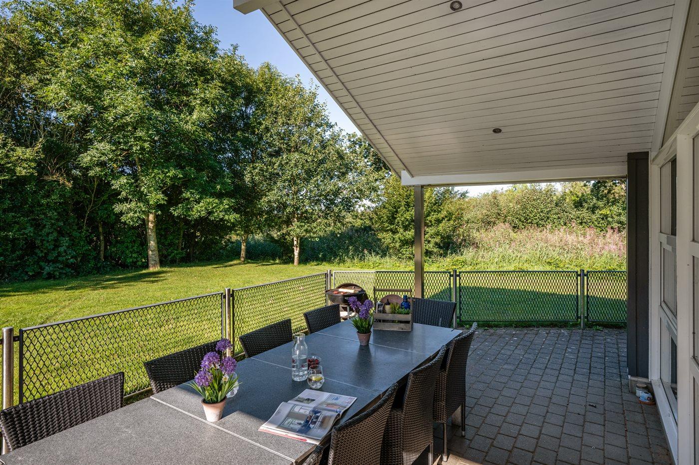 Dieses Ferienhaus liegt auf einem gepflegten und teilweise abgeschirmten Grundstück mit Platz für Ballspiele – am Ende einer Sackgasse in ruhiger Umgebung. Vom Haus können Sie die Aussicht auf die schöne Natur genießen.