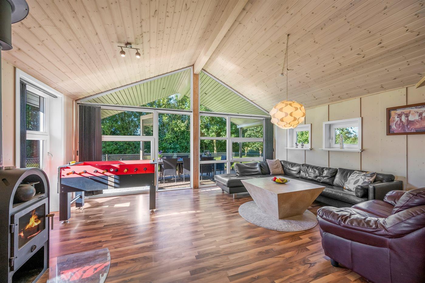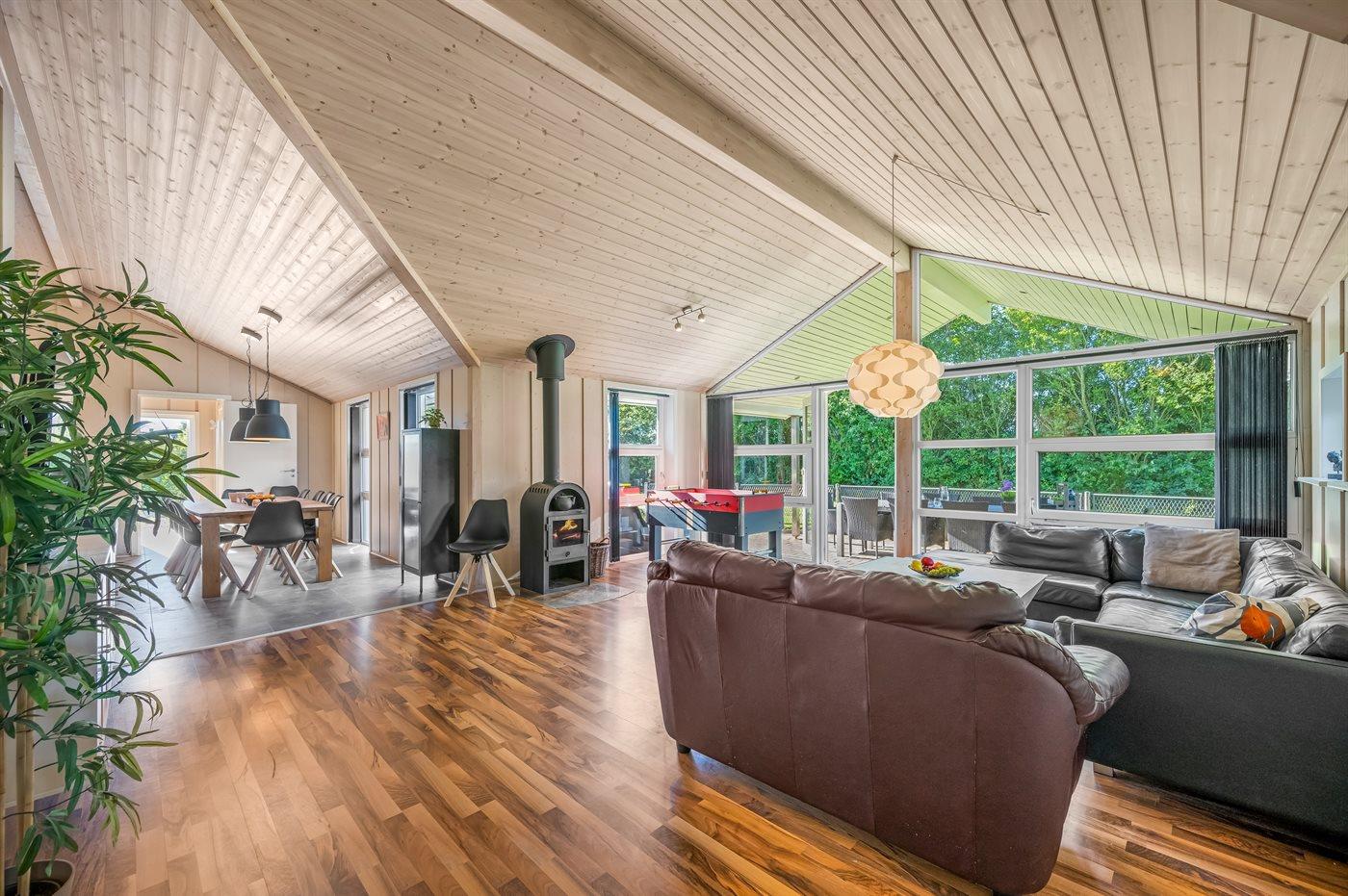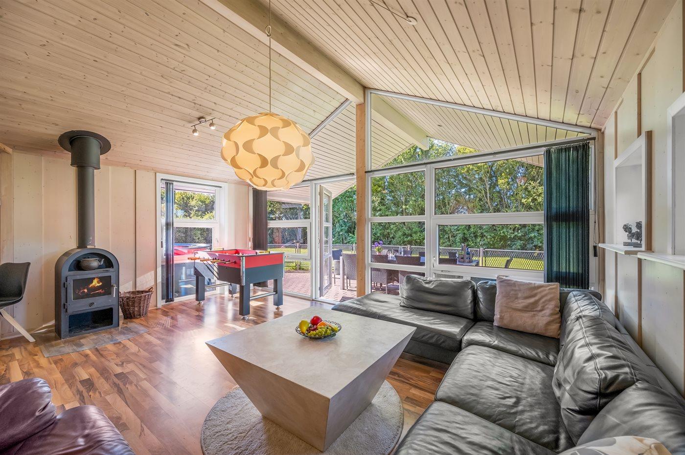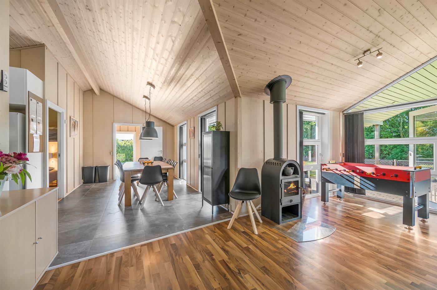 Das Ferienhaus eignet sich für 10 Personen sowie 1 Kleinkind bis zu 3 Jahren. 2 der Schlafplätze eignen sich jedoch nur für größere Kinder (4-11 Jahre). Die Ferienunterkunft hat eine Wohnfläche von 117 m² und wurde 2008 gebaut. Es ist erlaubt 2 Haustiere mitzubringen. Die Ferienunterkunft ist mit einer energiefreundlichen Luft-Luft-Wärmepumpe ausgestattet. Die Ferienunterkunft ist mit energiefreundlicher Luft-Wasser- Wärmepumpe ausgestattet. Fußbodenheizung in allen Räumen. Die Ferienunterkunft ist mit Waschmaschine ausgestattet. Wäschetrockner. Tiefkühlmöglichkeit mit 75 Liter Nutzinhalt. Es gibt außerdem einen Kaminofen. Für die jüngsten Feriengäste ist 1 Kinderhochstuhl vorhanden.