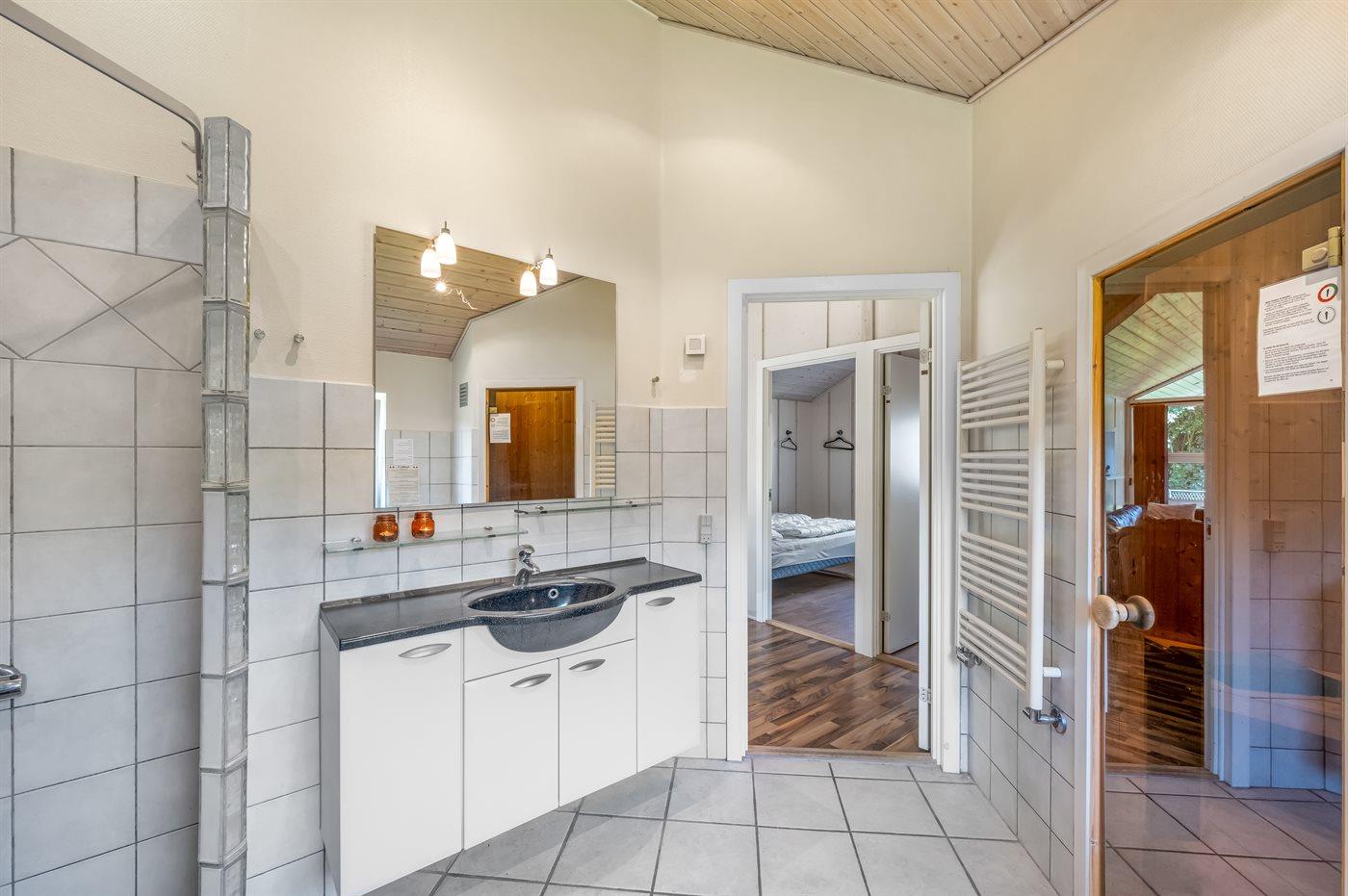 Es gibt 2 Badezimmer mit Duschnische und 2 Toiletten. Fußbodenheizung in 1 Badezimmer. Es steht eine Sauna zur Verfügung in der Sie sich so richtig entspannen können.