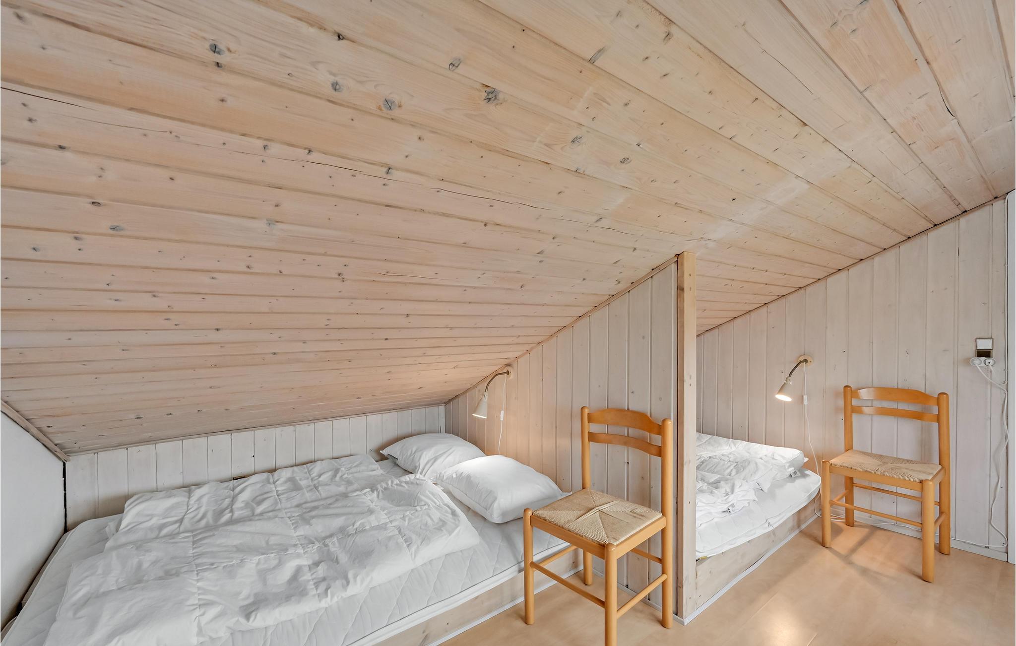 In der Wohnung gibt es eine gemütliche Wohnküche mit TV. Das eine Schlafzimmer hat zwei Einzelbetten, während die 1. Etage mit zwei Doppelbetten, die durch eine Trennwand voneinander getrennt sind, eingerichtet ist. Es gibt ein Bad mit Dusche.