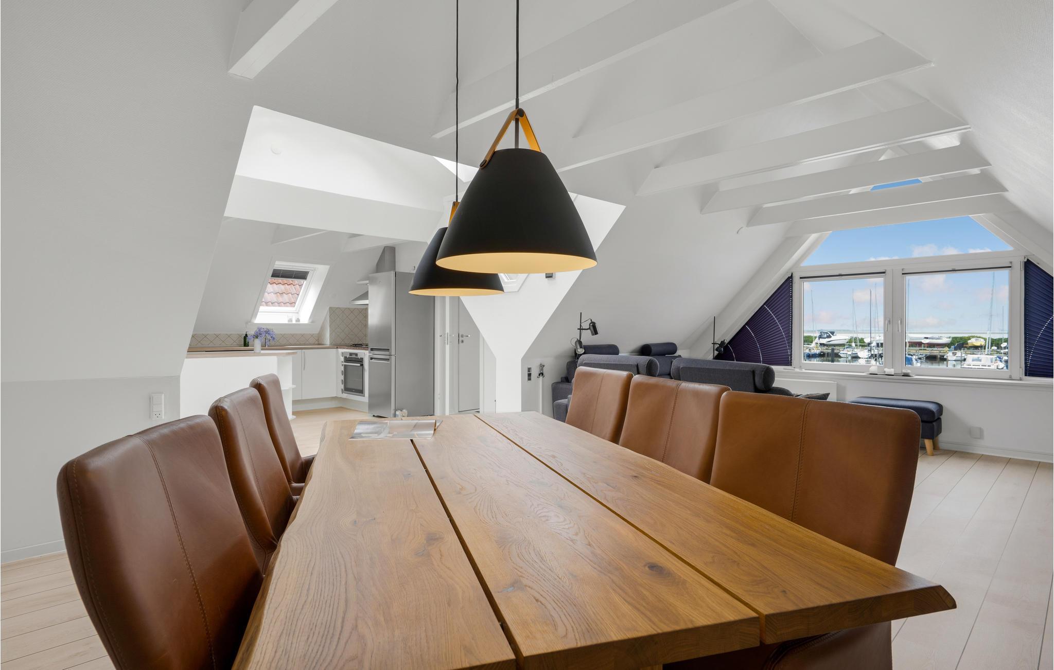 Mit ihren hellen Räumen und der stilvollen Einrichtung lädt die geräumige Wohnung zum Entspannen ein. Hier haben Sie Bade- und Angelmöglichkeiten direkt vor der Haustür und können beim Entspannen auf dem bequemen Sofa dem Treiben im Jachthafen zuschauen. Treten Sie gleich morgens auf die Terrasse und genießen Sie die ersten Sonnenstrahlen mit fantastischem Panorama, später können Sie hier gemütlich grillen und die Boote beobachten. Machen Sie es sich nach einem Tag voller Erlebnisse in der Wohnung gemütlich, plaudern Sie noch lange und genießen Sie die gemeinsame Zeit.