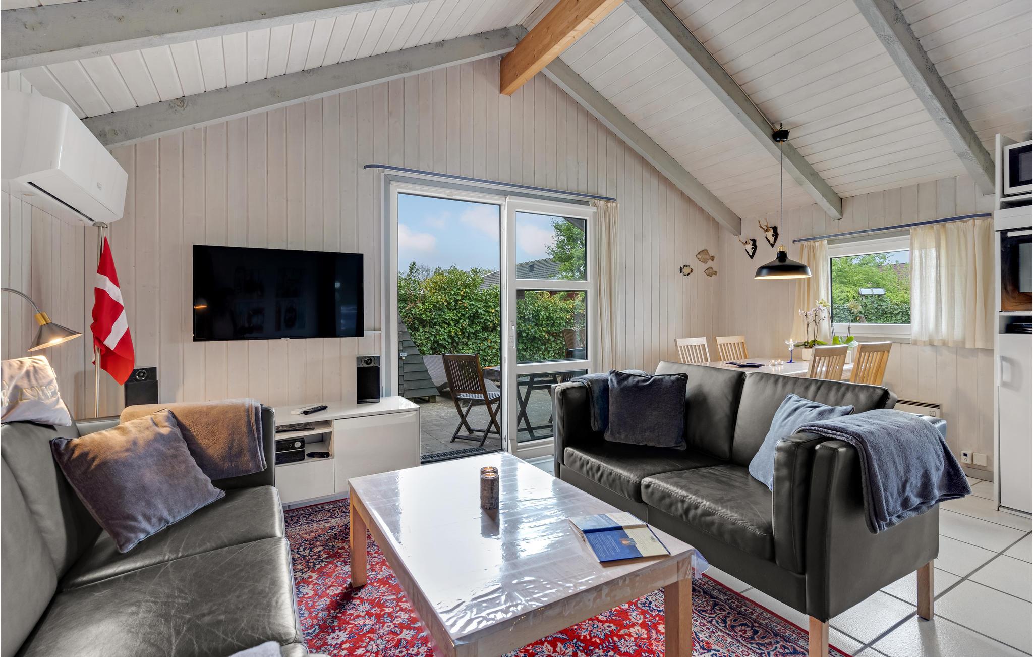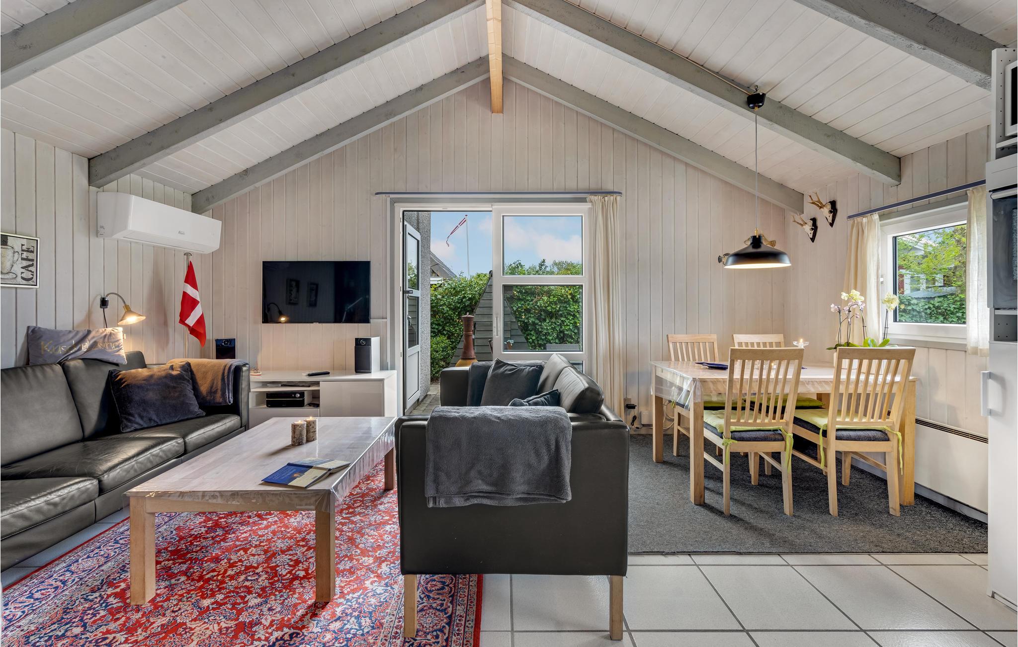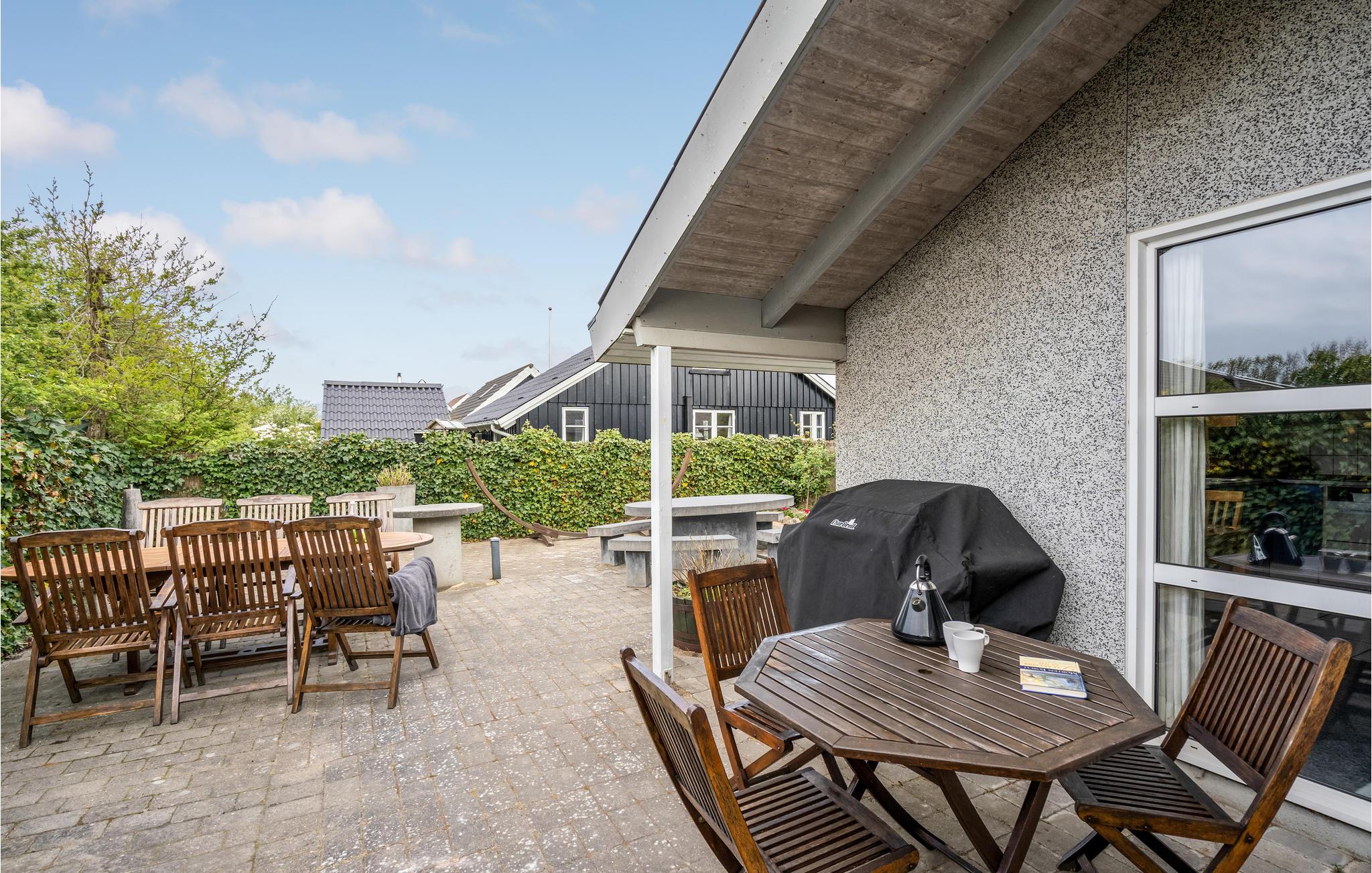 Gemütliches Ferienhaus mit Kamin, Terrasse und Garten nahe der Küste in Bork Havn, ideal für entspannte Tage mit Familie oder Freunden.