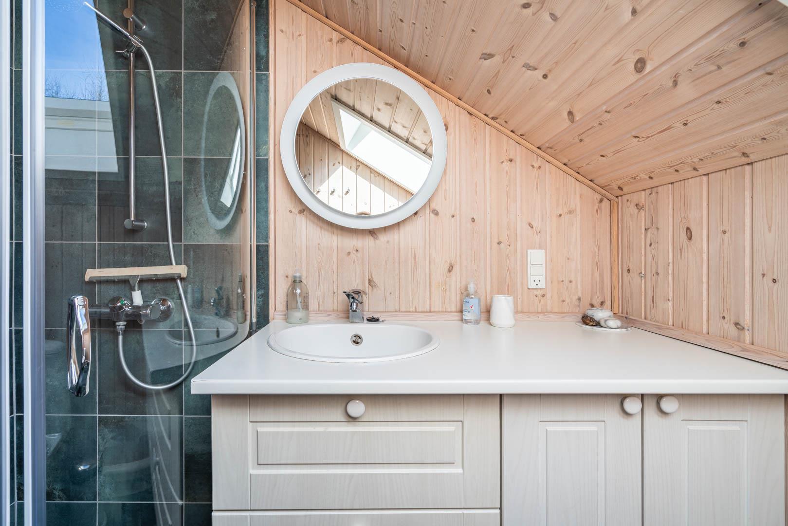 Das Badezimmer verfügt über Fußbodenheizung – besonders angenehm an kühleren Tagen. Außerdem steht euch eine Waschmaschine und ein Trockner zur Verfügung – perfekt für längere Aufenthalte oder den Familienurlaub. Wertvolle Gegenstände könnt ihr sicher im Safe aufbewahren.