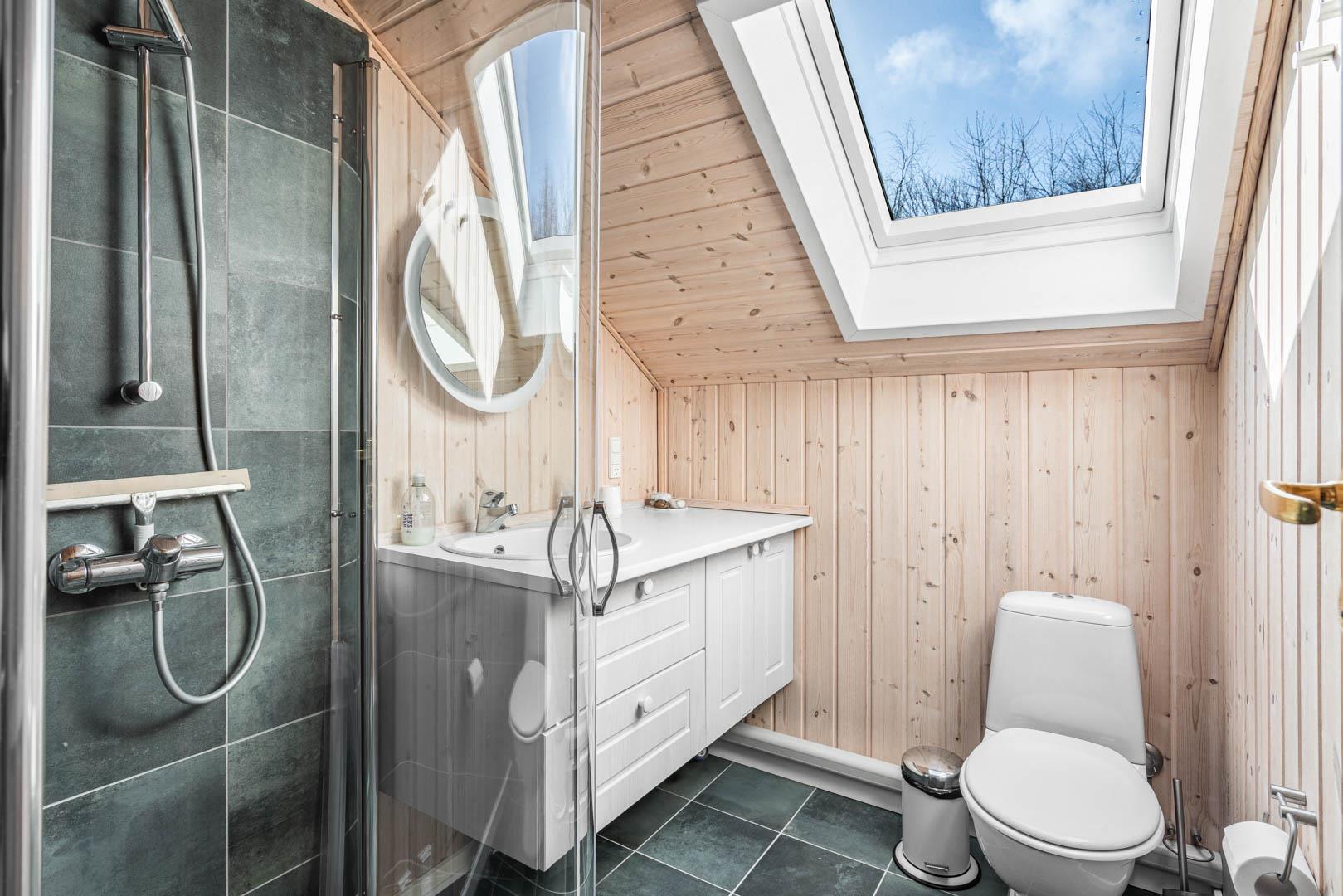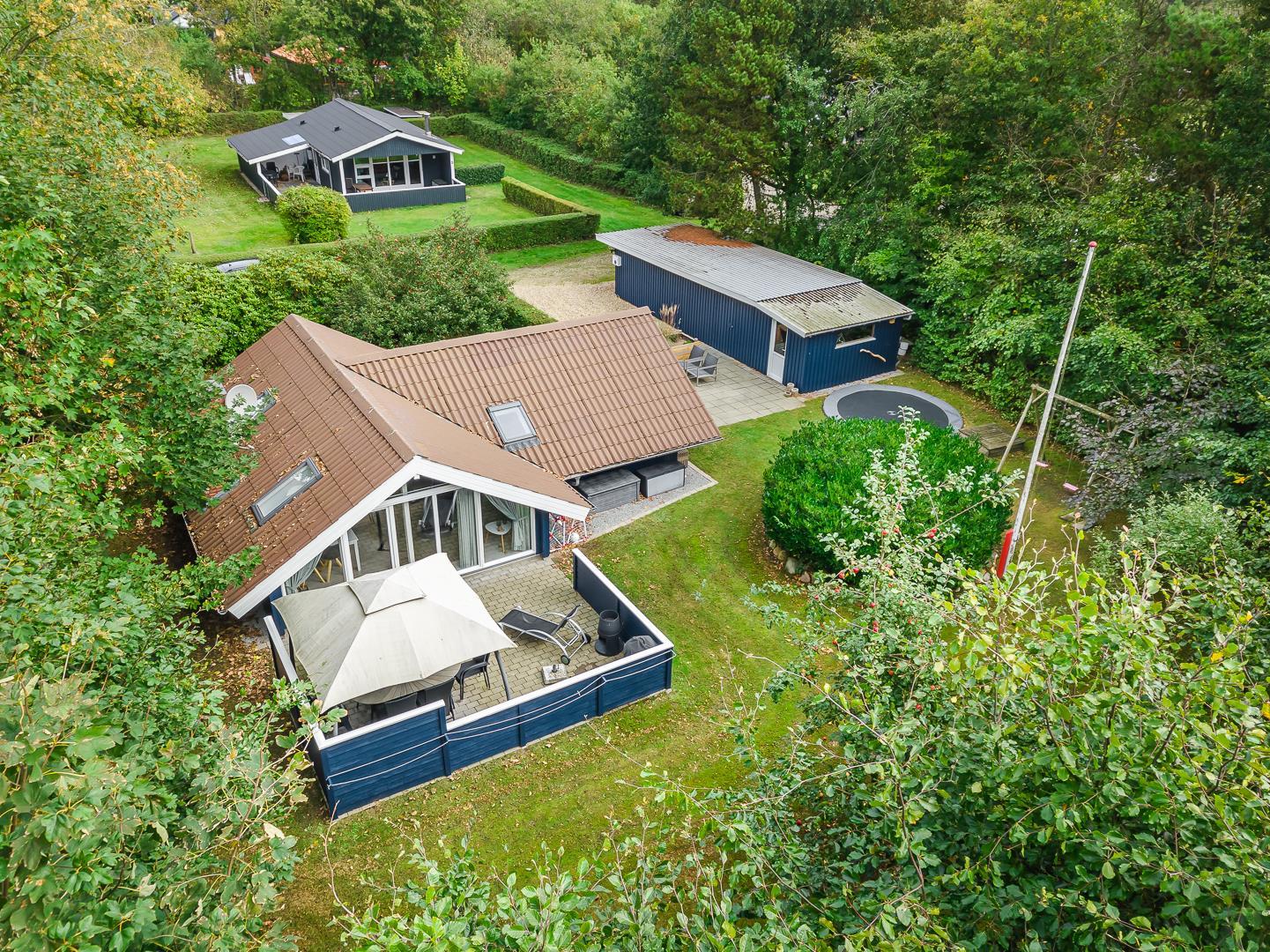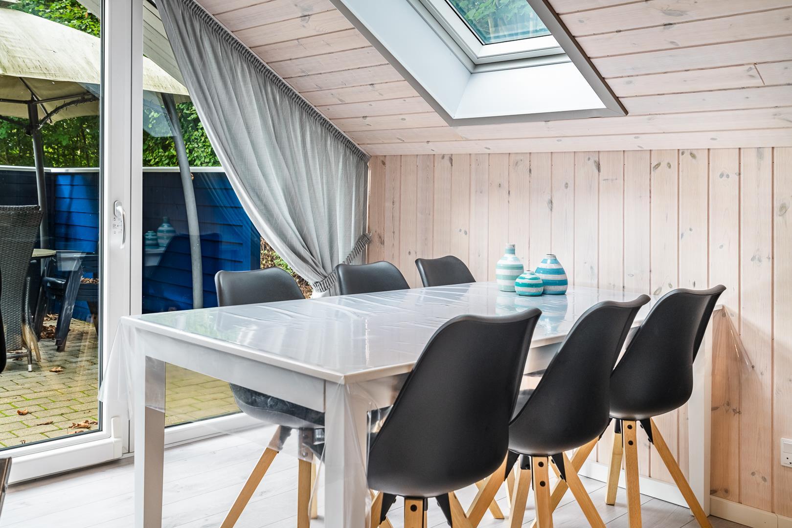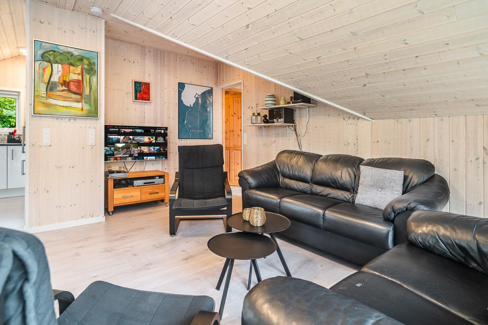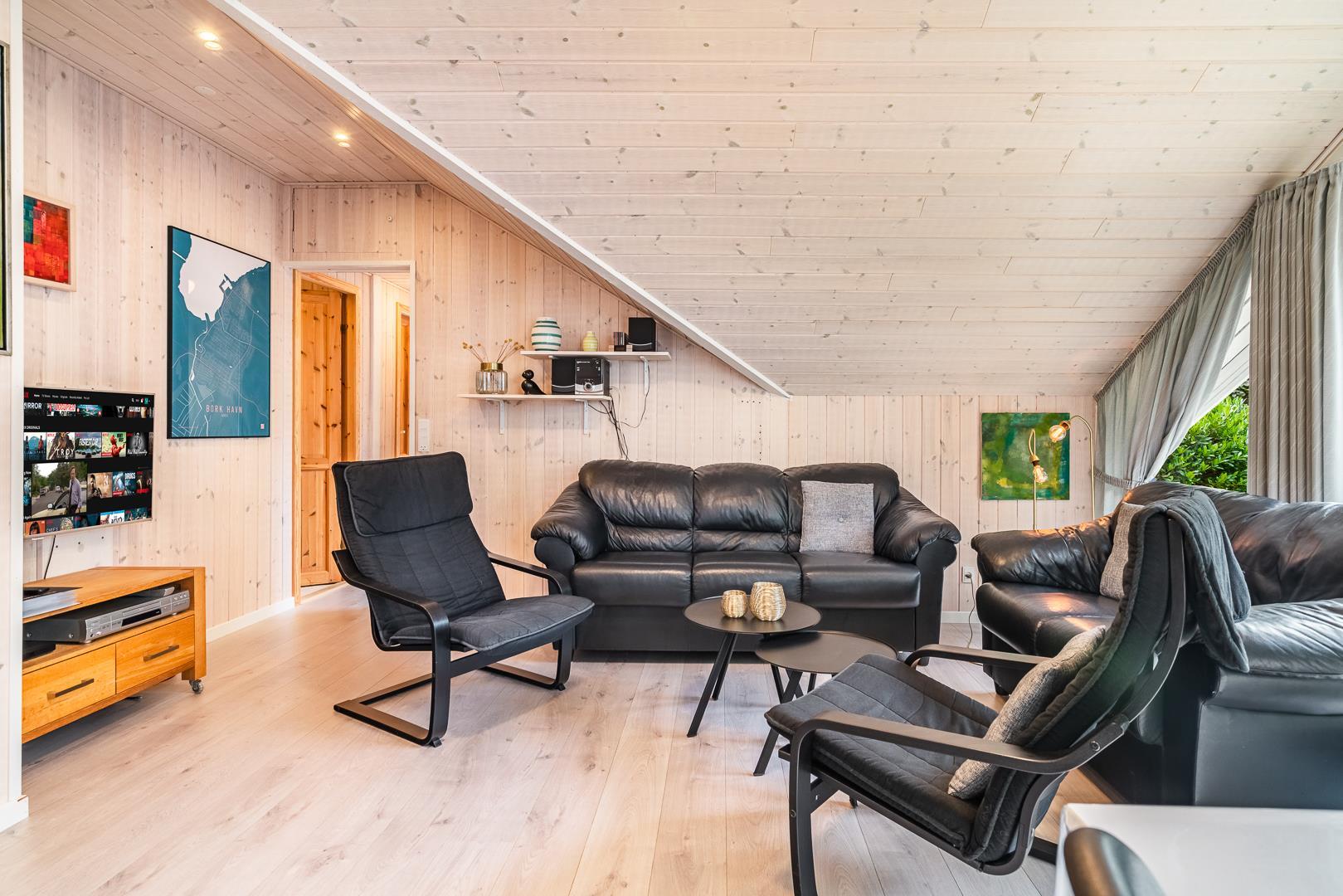 Das Ferienhaus verfügt über drei Schlafzimmer, zwei mit Doppelbett und eines mit Etagenbett – optimal aufgeteilt für Familien mit Kindern. Dank der hellen Holzverkleidung und der geschmackvollen Einrichtung entsteht ein freundliches, skandinavisches Ambiente, in dem man sich sofort wohlfühlt.