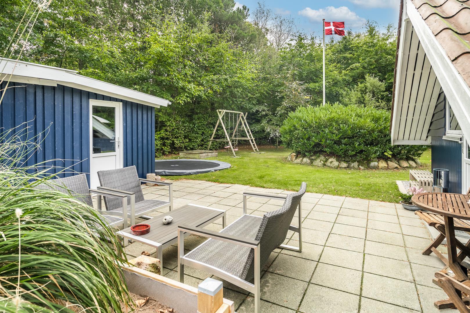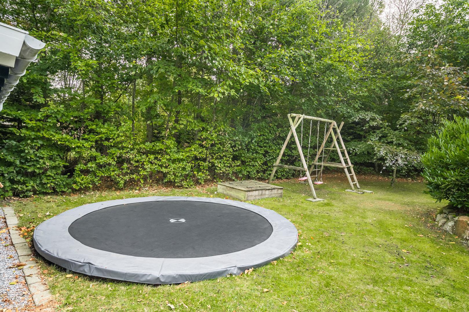 Auf der überdachten Terrasse könnt ihr gemütlich frühstücken oder den Tag bei einem Glas Wein ausklingen lassen. Der Garten ist ideal für Kinder – mit Schaukel, Sandkasten und Trampolin ist für viel Bewegung gesorgt. Auch euer Hund ist hier willkommen.