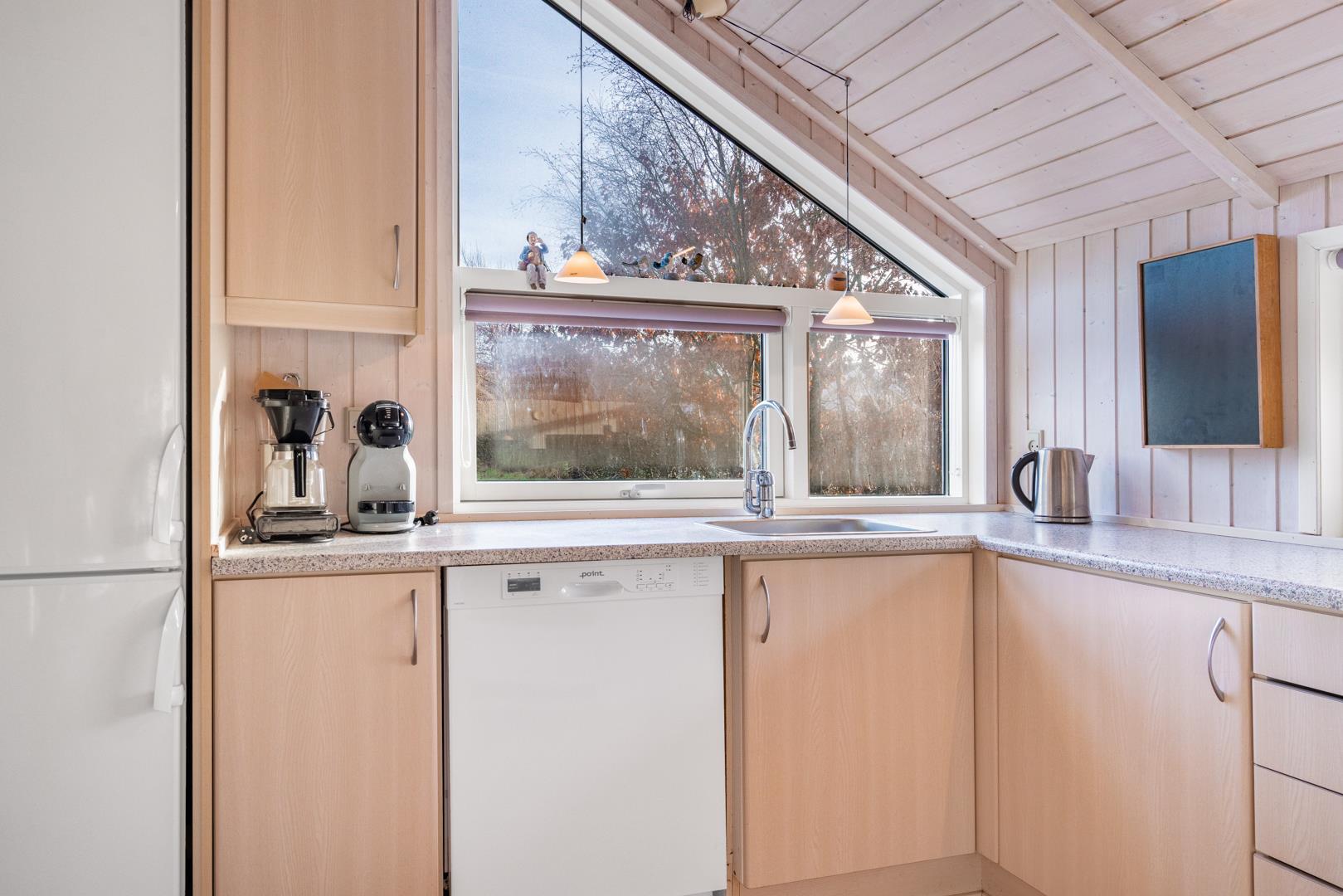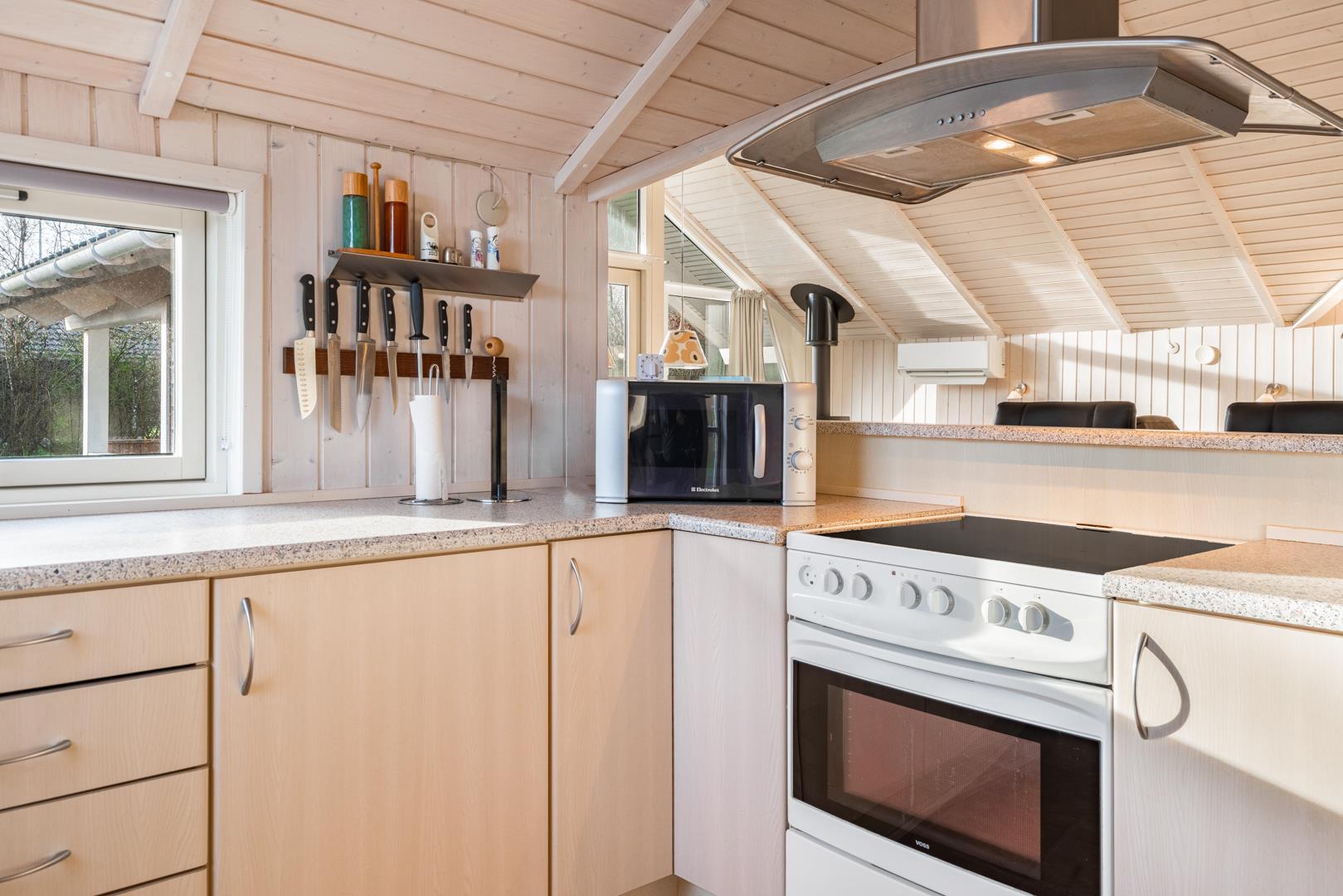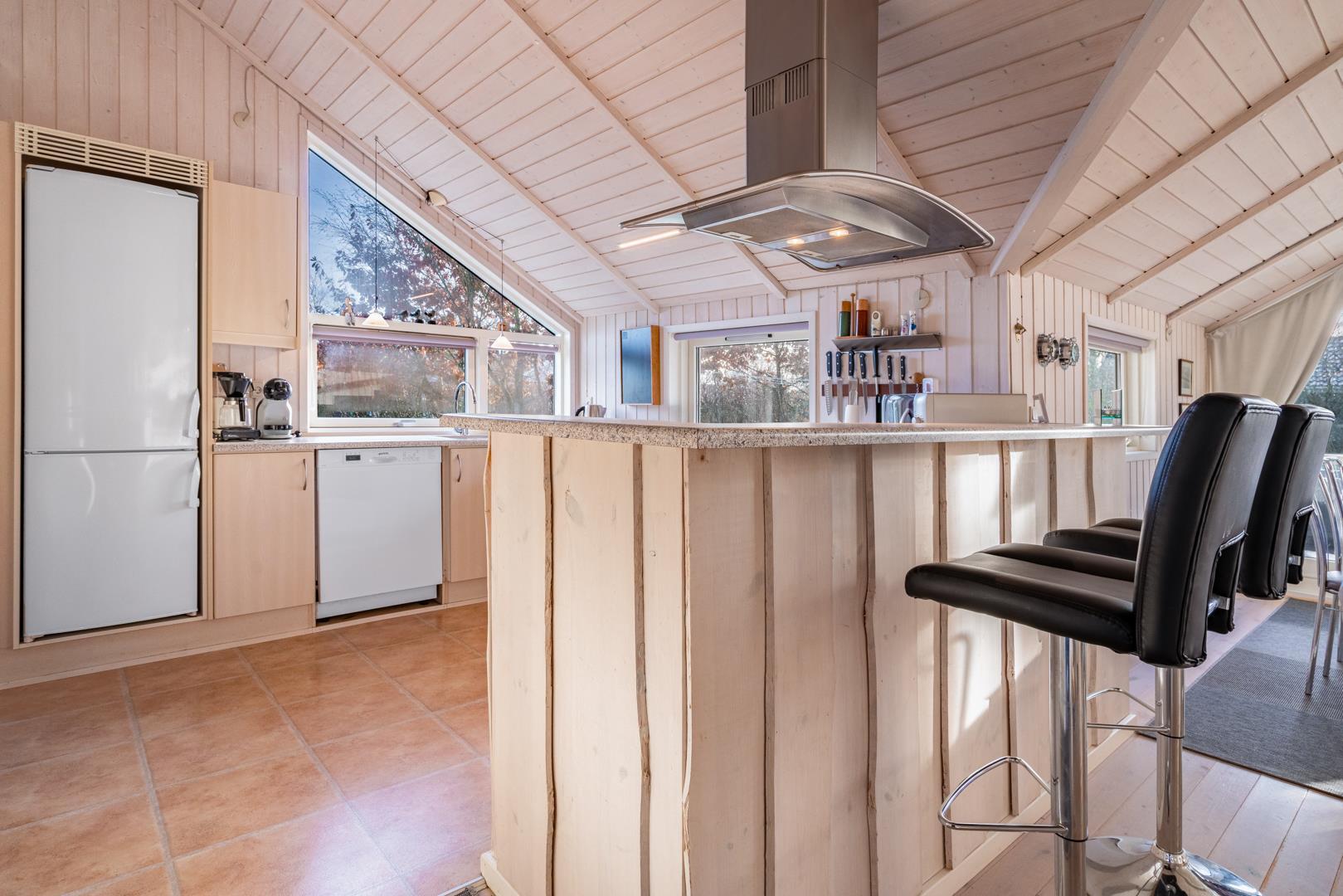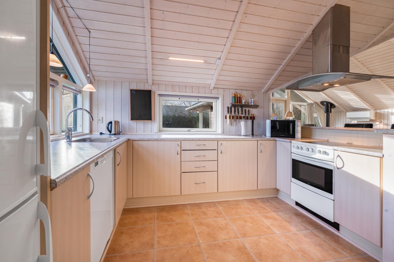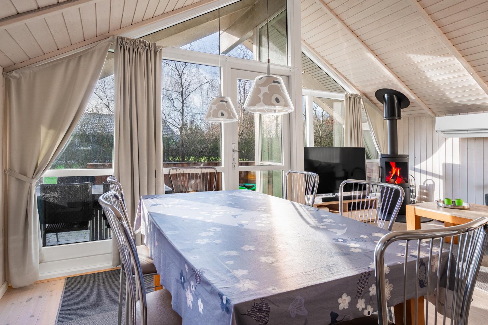 Im hellen Wohnbereich mit großen Fenstern fühlt ihr euch sofort wie zu Hause. Macht es euch auf dem Sofa gemütlich, genießt den knisternden Kamin oder die angenehme Wärme der Wärmepumpe. Die modern ausgestattete Küche mit Spülmaschine, Waschmaschine und Trockner macht euren Urlaub besonders komfortabel – ihr habt mehr Zeit für das, was wirklich zählt: Erholung.