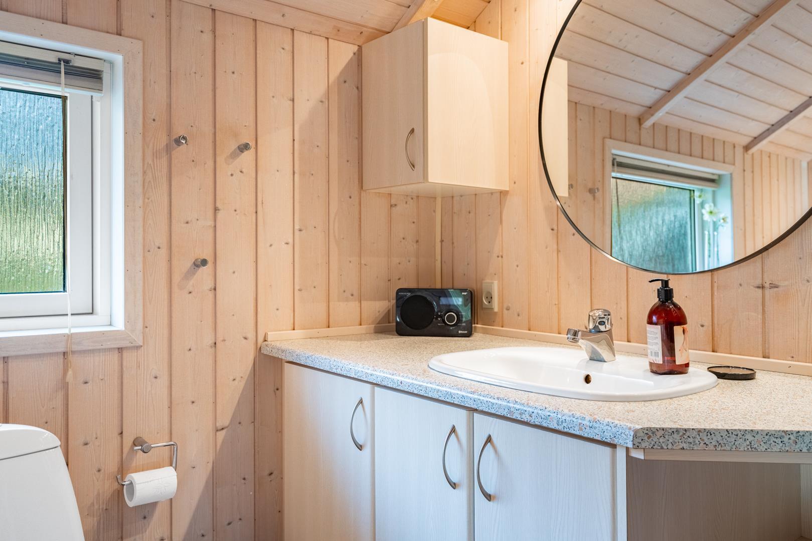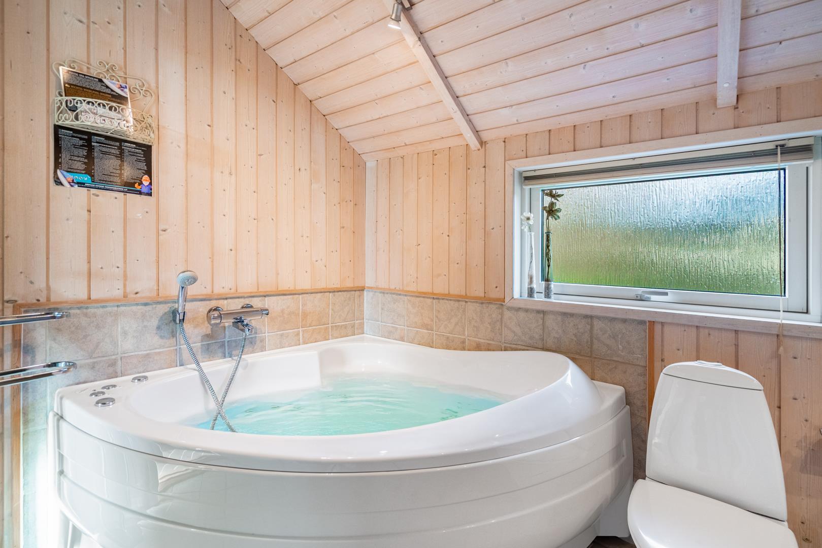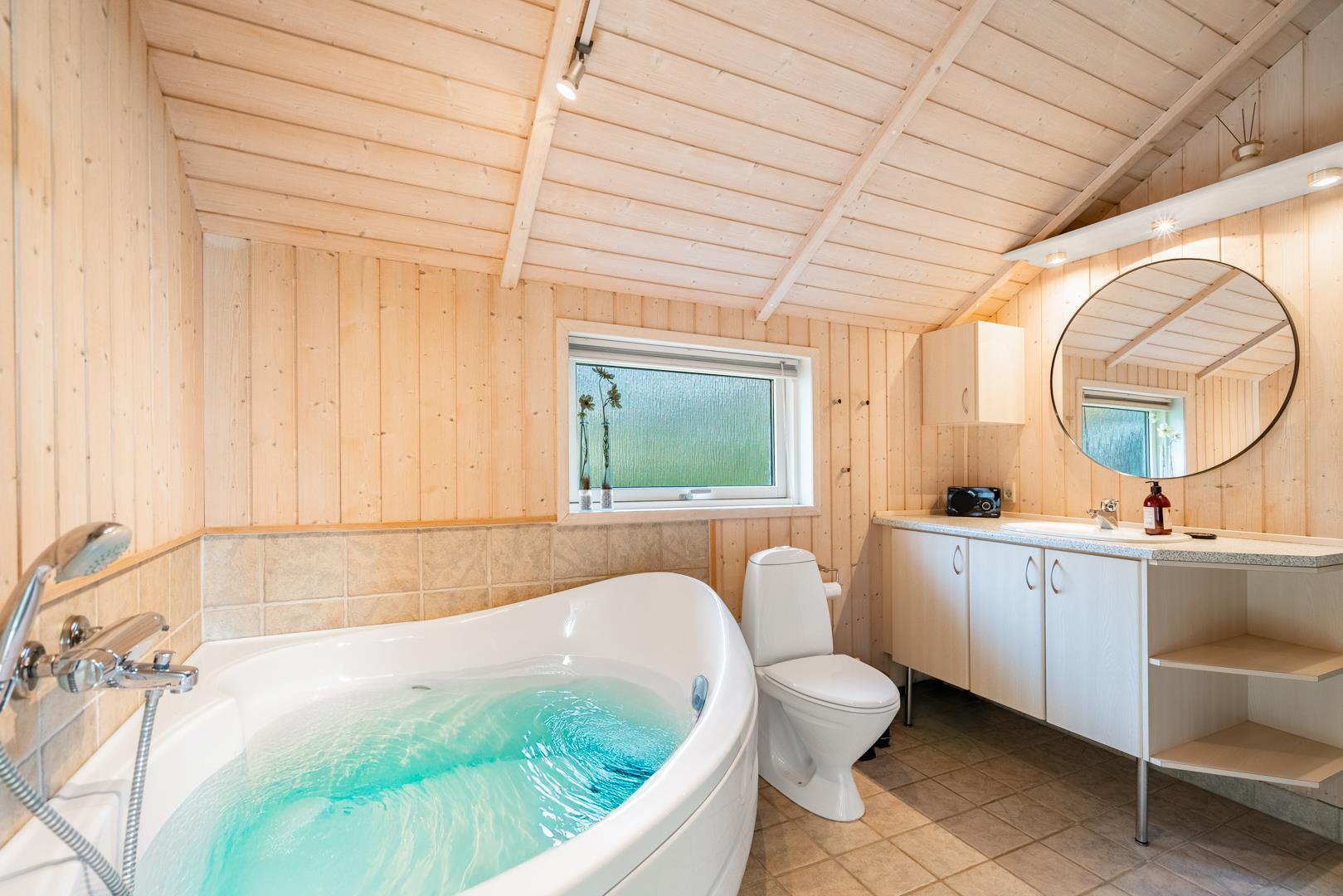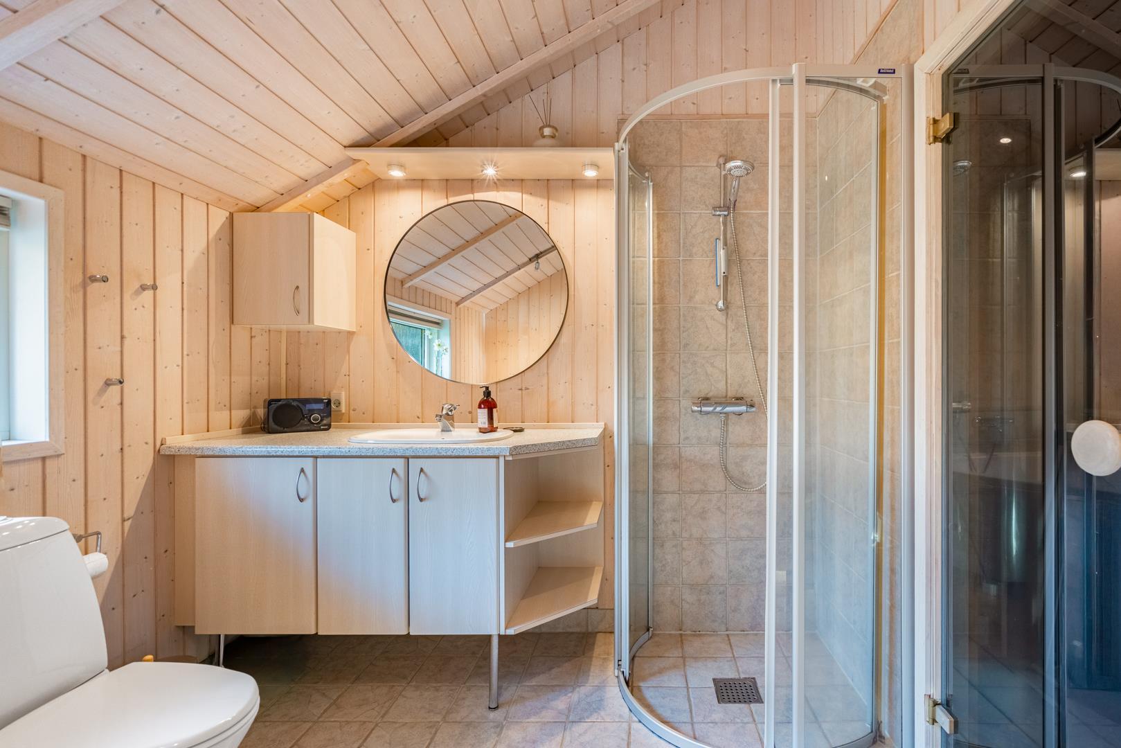Nach einem langen Tag am Fjord oder am Meer könnt ihr im Whirlpool entspannen oder in der Sauna neue Energie tanken. Das Badezimmer ist mit Fußbodenheizung ausgestattet – perfekt an kühlen Tagen. Außerdem gibt es ein zusätzliches Gäste-WC, was besonders praktisch ist, wenn ihr mit mehreren Personen reist.