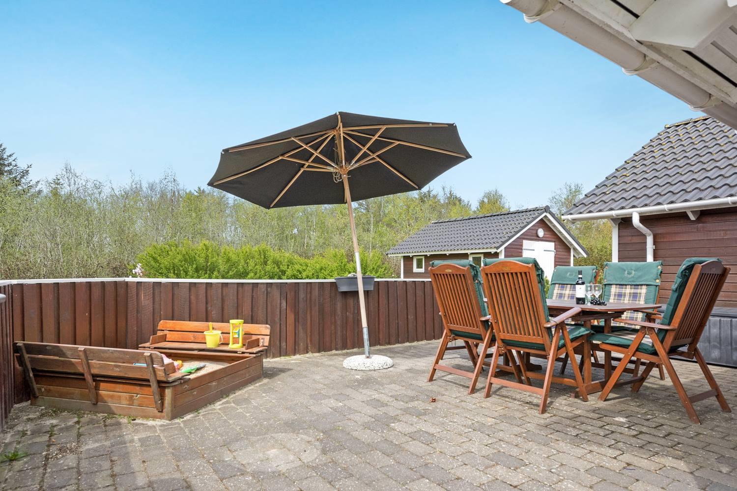Draußen erwartet euch ein schöner Garten mit überdachter Terrasse, Schaukel und Sandkasten – perfekt, wenn ihr mit Kindern reist oder einfach gern im Freien entspannt. Hier könnt ihr gemeinsam essen, lesen oder einfach die frische Seeluft genießen.