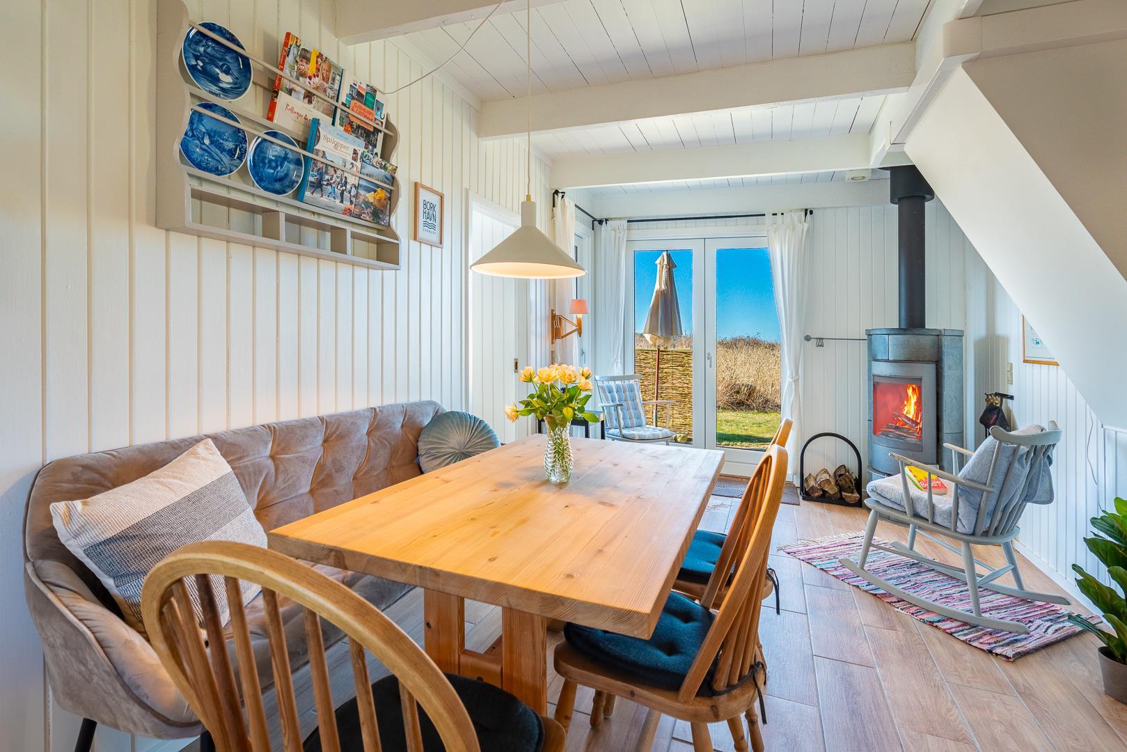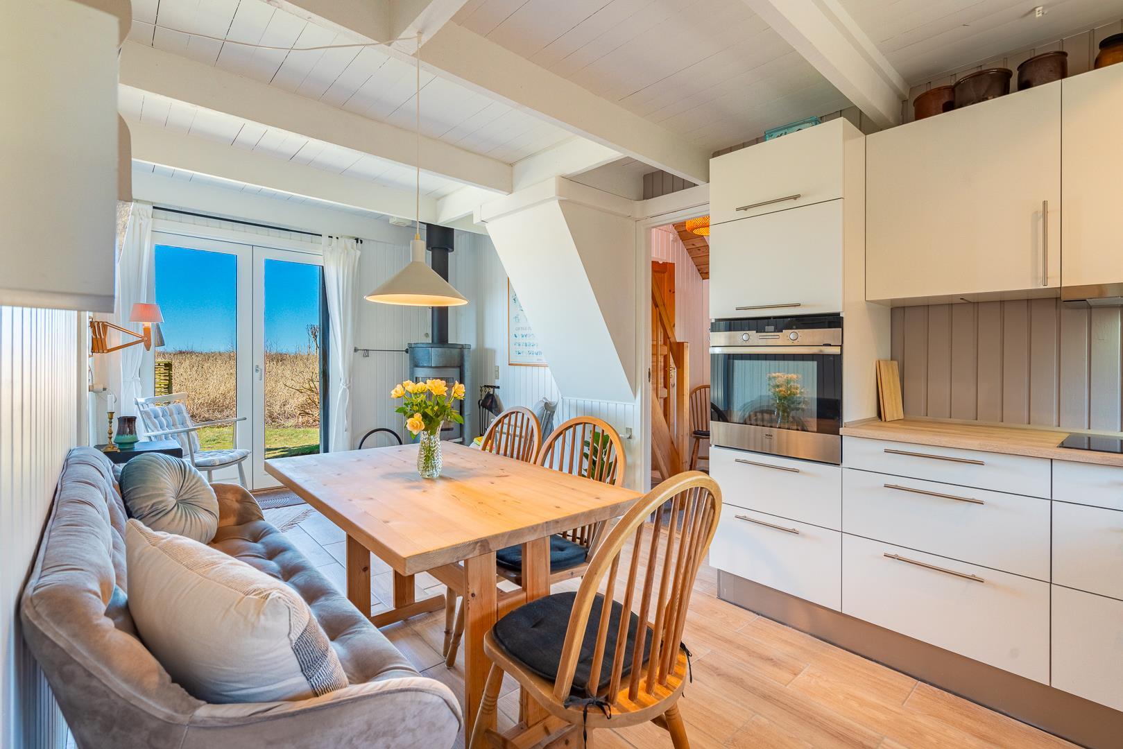 Das Ferienhaus wurde liebevoll modernisiert und bietet euch dänische Hygge in ihrer schönsten Form. Der helle Wohnraum mit großen Fenstern öffnet den Blick über die friedliche Landschaft von Tipperne und Bork Mærsk – ein Panorama, das jeden Urlaubstag besonders macht.