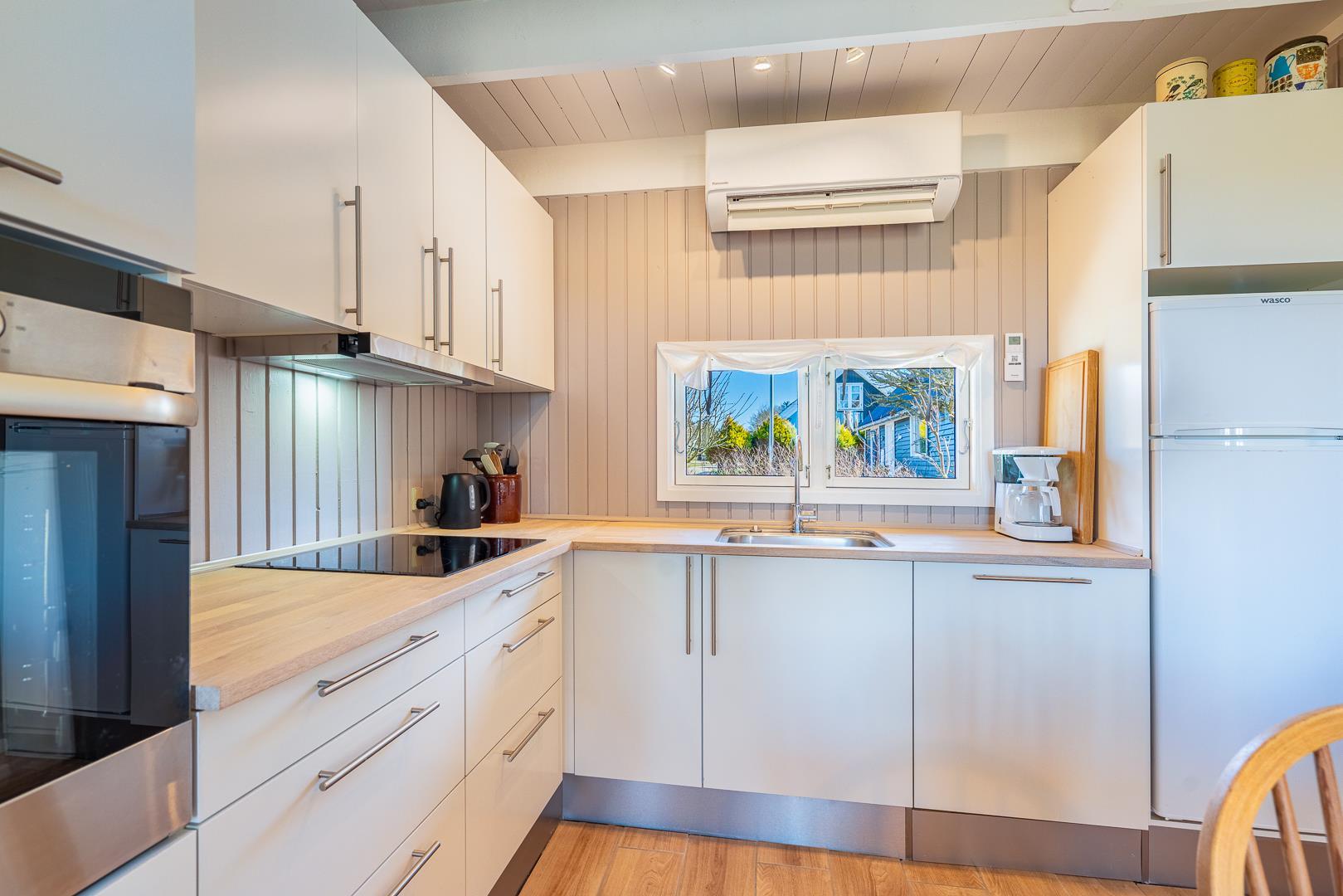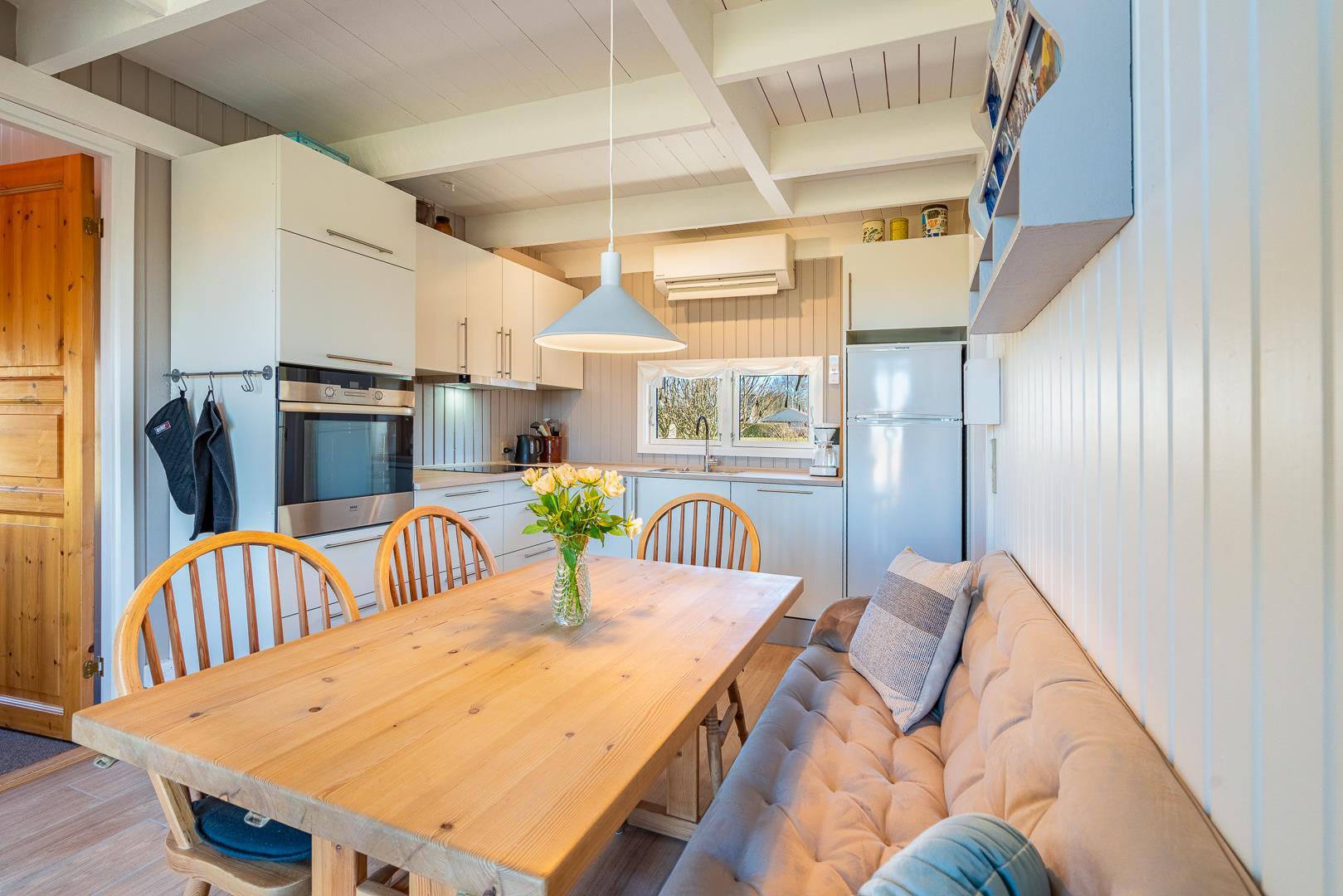 In der offenen Küche mit Spülmaschine und Fußbodenheizung könnt ihr gemeinsam kochen, essen und den Tag genießen. Die drei Schlafzimmer bieten Platz für erholsame Nächte – ein Doppelzimmer, ein Einzelzimmer und eines mit Etagenbetten, das besonders bei Kindern beliebt ist.