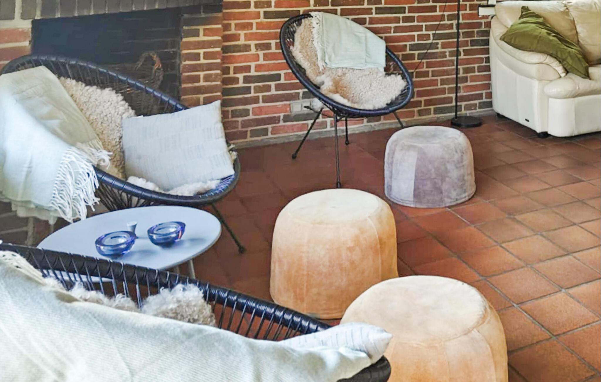 Ihr zweistöckiges Ferienhaus aus Stein liegt in der kleinen Freizeithaussiedlung Botofte auf Nordlangeland. Das Haus bietet eine einfache, aber funktionale Ausstattung, die ideal für eine entspannte Auszeit ist. Im Wohnzimmer sorgen die Backsteinmauern und der Kaminofen für Gemütlichkeit, und große Fenster lassen viel Tageslicht in die Räume. Bereiten Sie bequem Ihre Mahlzeiten in der offenen Küche zu. Ganz besondere Highlights Ihres Ferienhauses sind die Sauna und der Whirlpool, die Ihnen nach einem erlebnisreichen Tag Entspannung bieten.