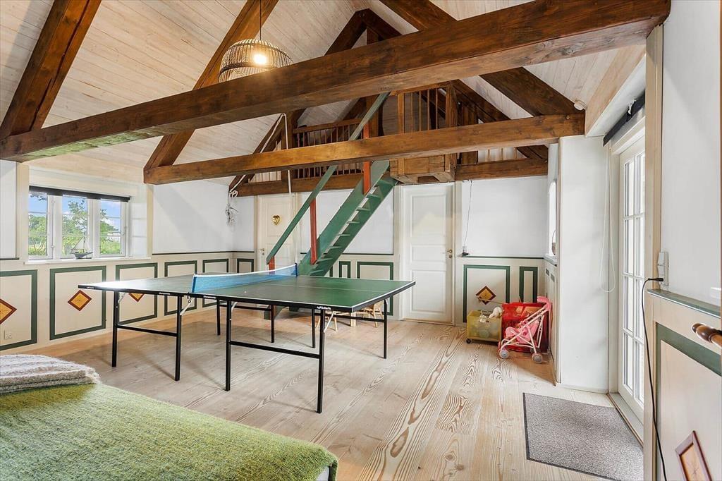 Im Außenbereich bietet das Ferienhaus eine gemütliche Terrassenlandschaft, auf der du die Sonnenstrahlen genießen oder das Abendessen unter freiem Himmel servieren kannst. Das große Grundstück, das das Haus umgibt, bietet viel Platz für Entspannung und Spiel. Hier können die Kinder frei herumlaufen, während die Erwachsenen mit einem guten Buch oder einer Tasse Kaffee entspannen. Von der Terrasse aus kannst du auch die Nähe zum Meer spüren, und in nur wenigen Minuten erreichst du den nahegelegenen Strand, wo der Sand zwischen den Zehen und das sanfte Rauschen der Wellen für die entspannendsten Momente des Urlaubs sorgen werden. Wenn du es aktiver magst, kannst du die Familie auch zu einer Partie Tischtennis in dem speziell dafür vorgesehenen Spielzimmer herausfordern.