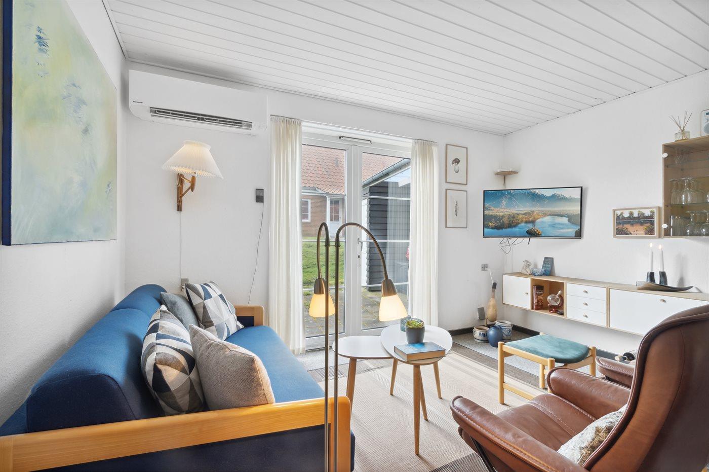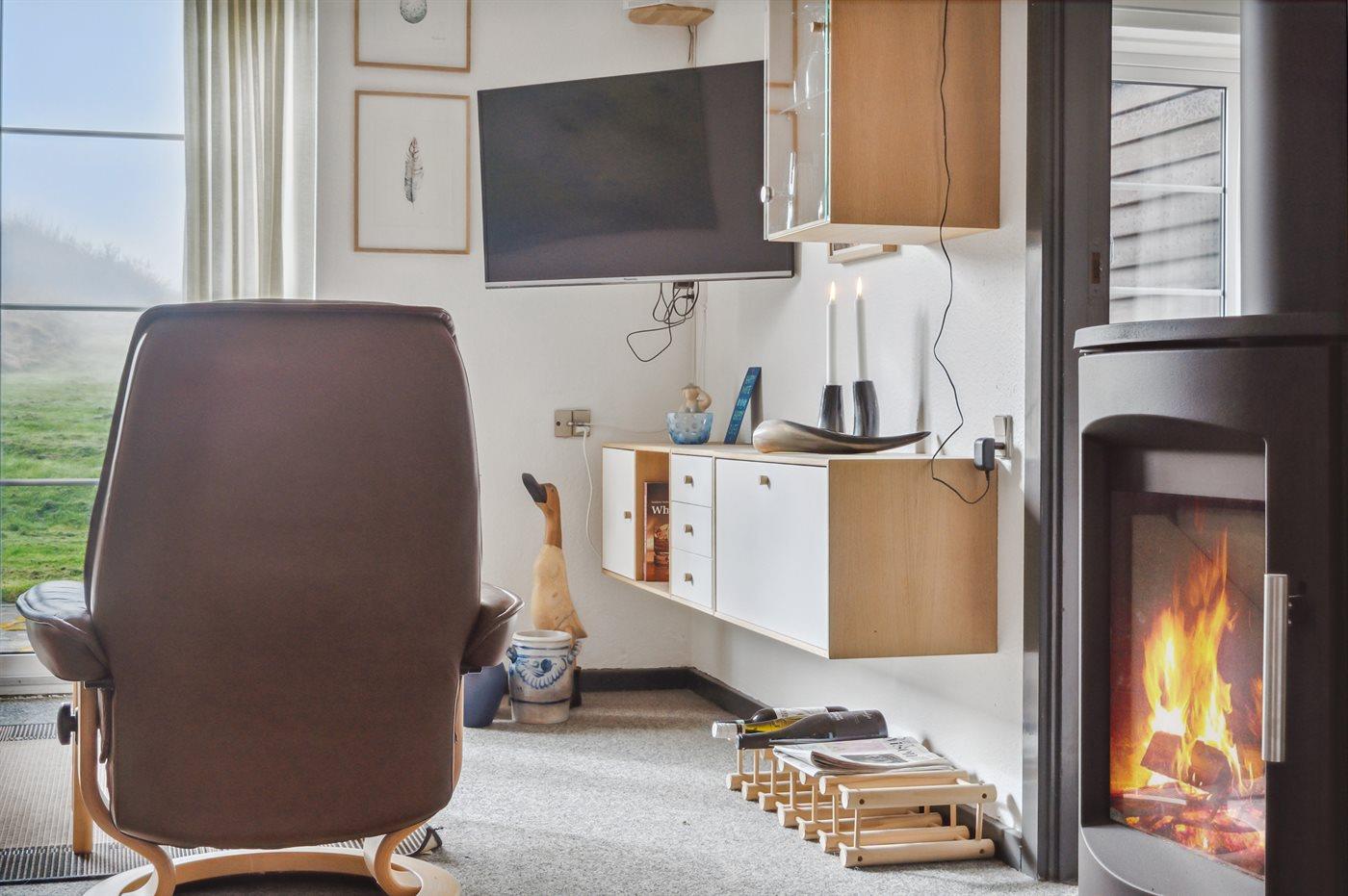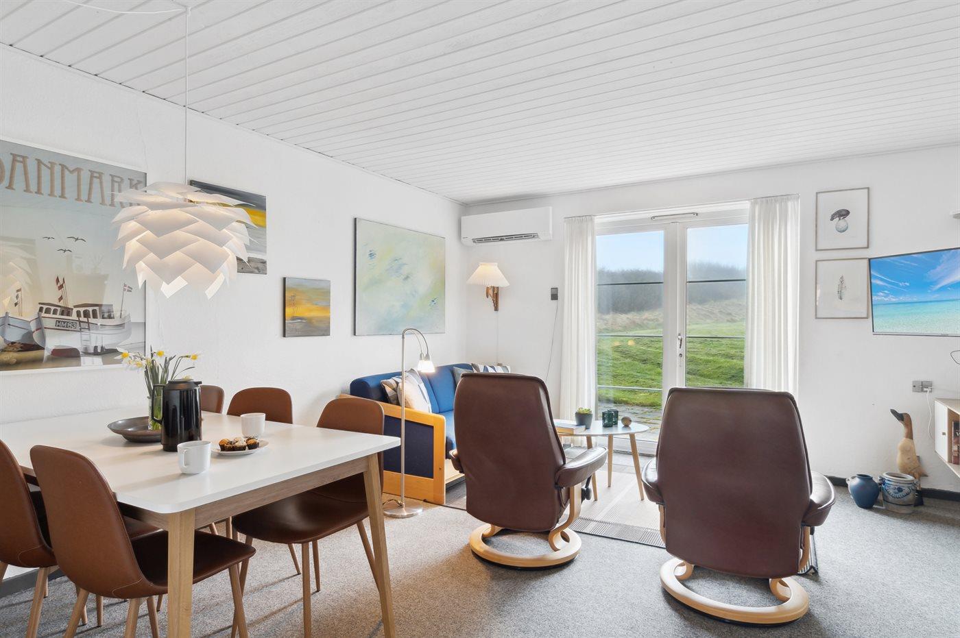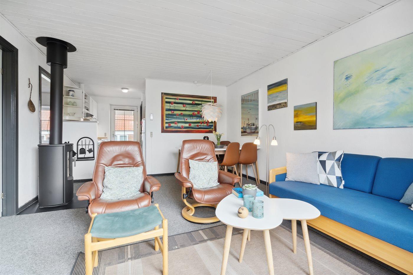 Gemütliche Ferienwohnung in Bovbjerg Strandpark, 200 m vom Meer mit Terrasse und Kaminofen.