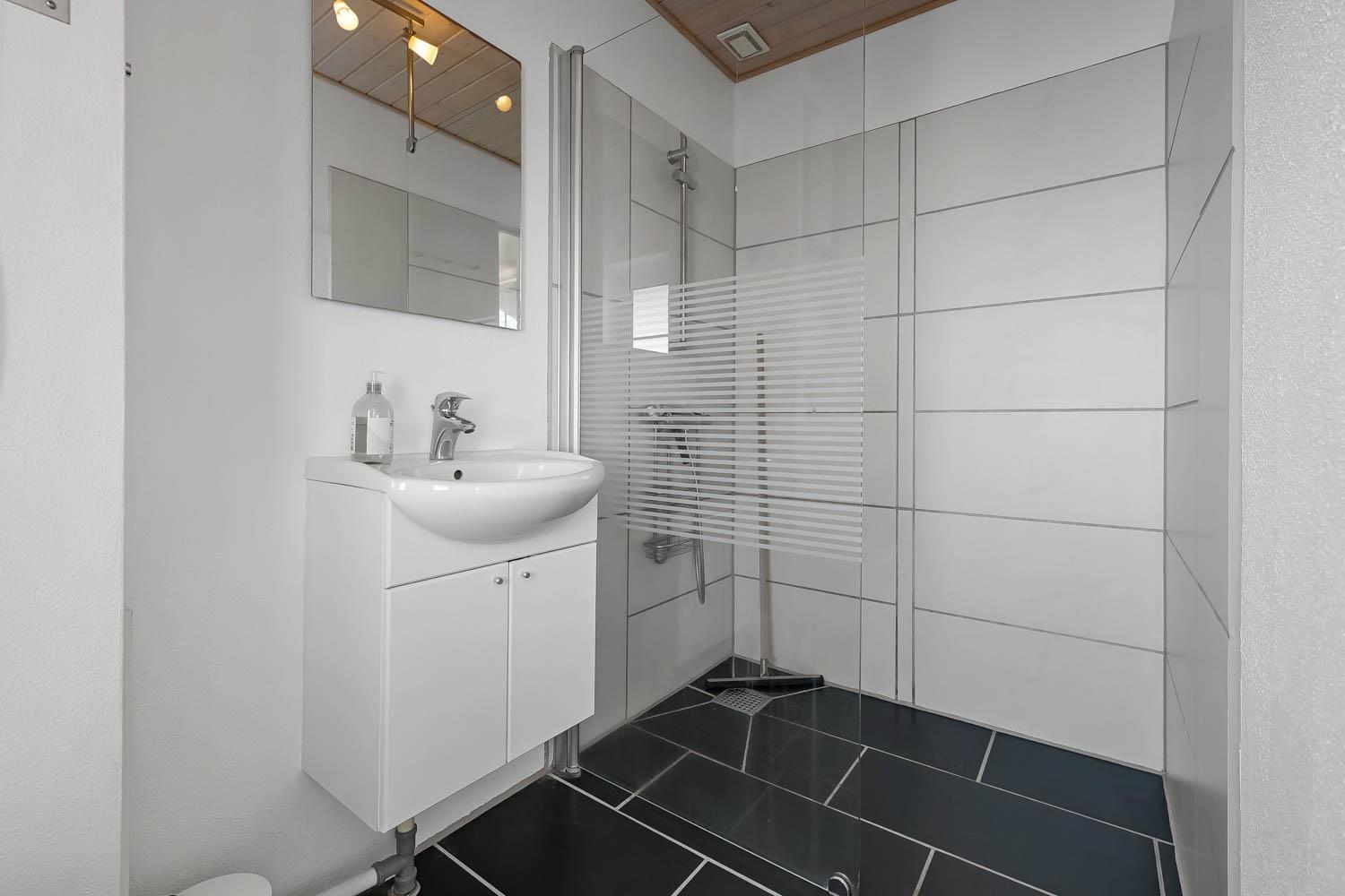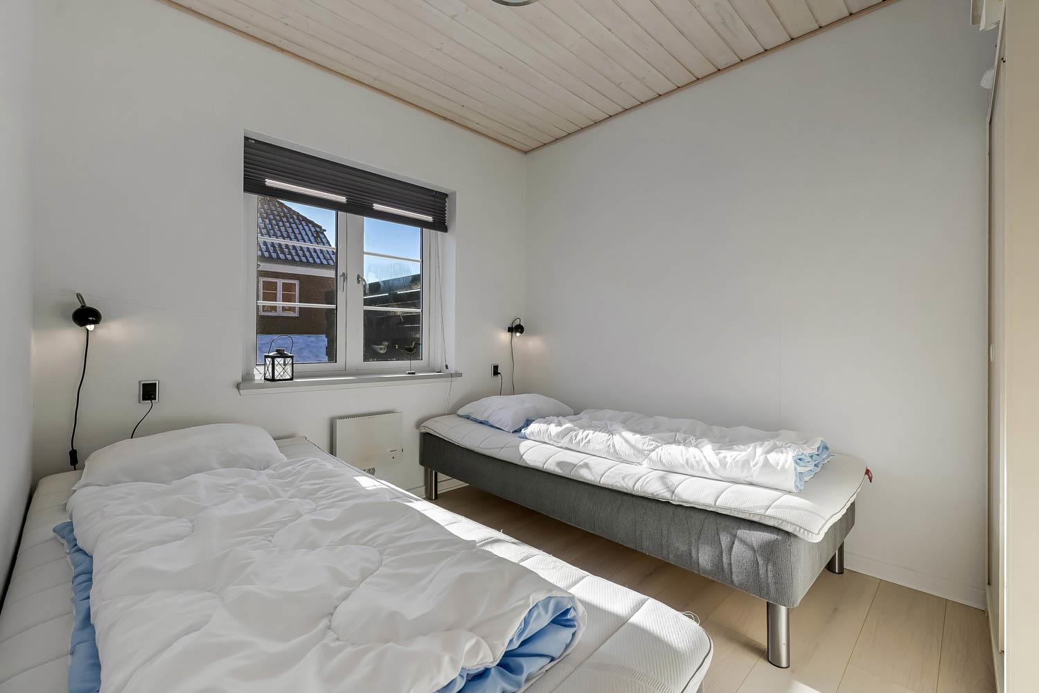 Das Haus verfügt über zwei Schlafzimmer, eines mit Doppelbett und eines mit zwei Einzelbetten, und eignet sich damit ideal für eine kleine Familie oder zwei Paare. Das Badezimmer ist hell und modern gestaltet und mit einer Duschkabine sowie angenehmer Fußbodenheizung ausgestattet.