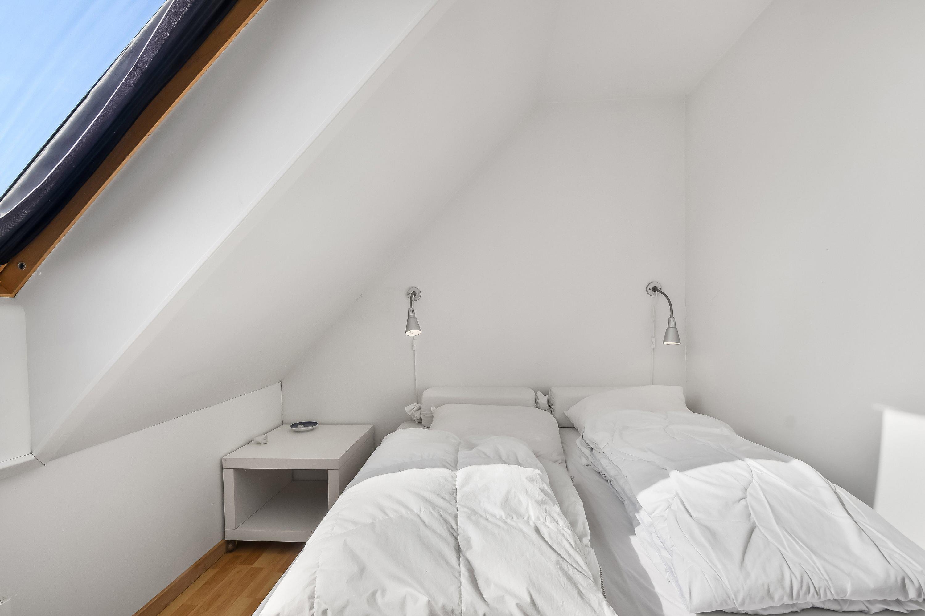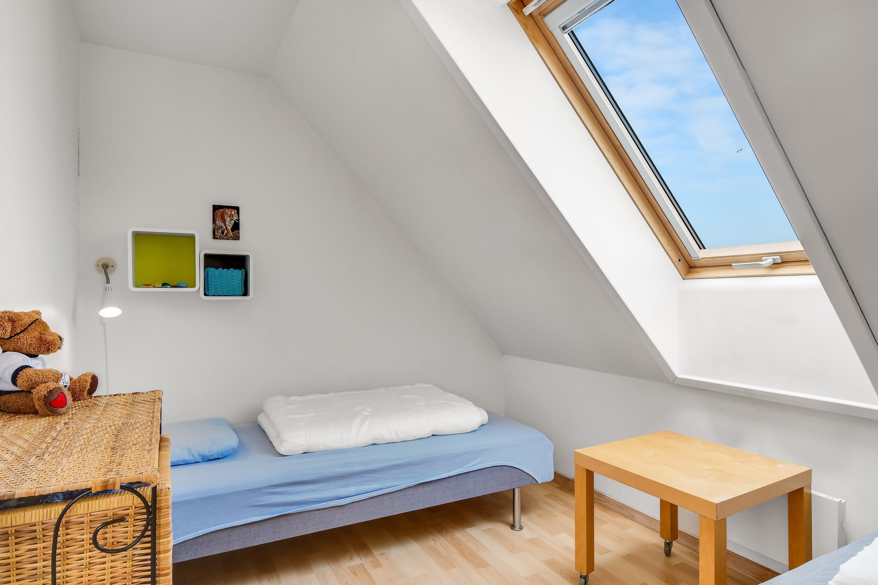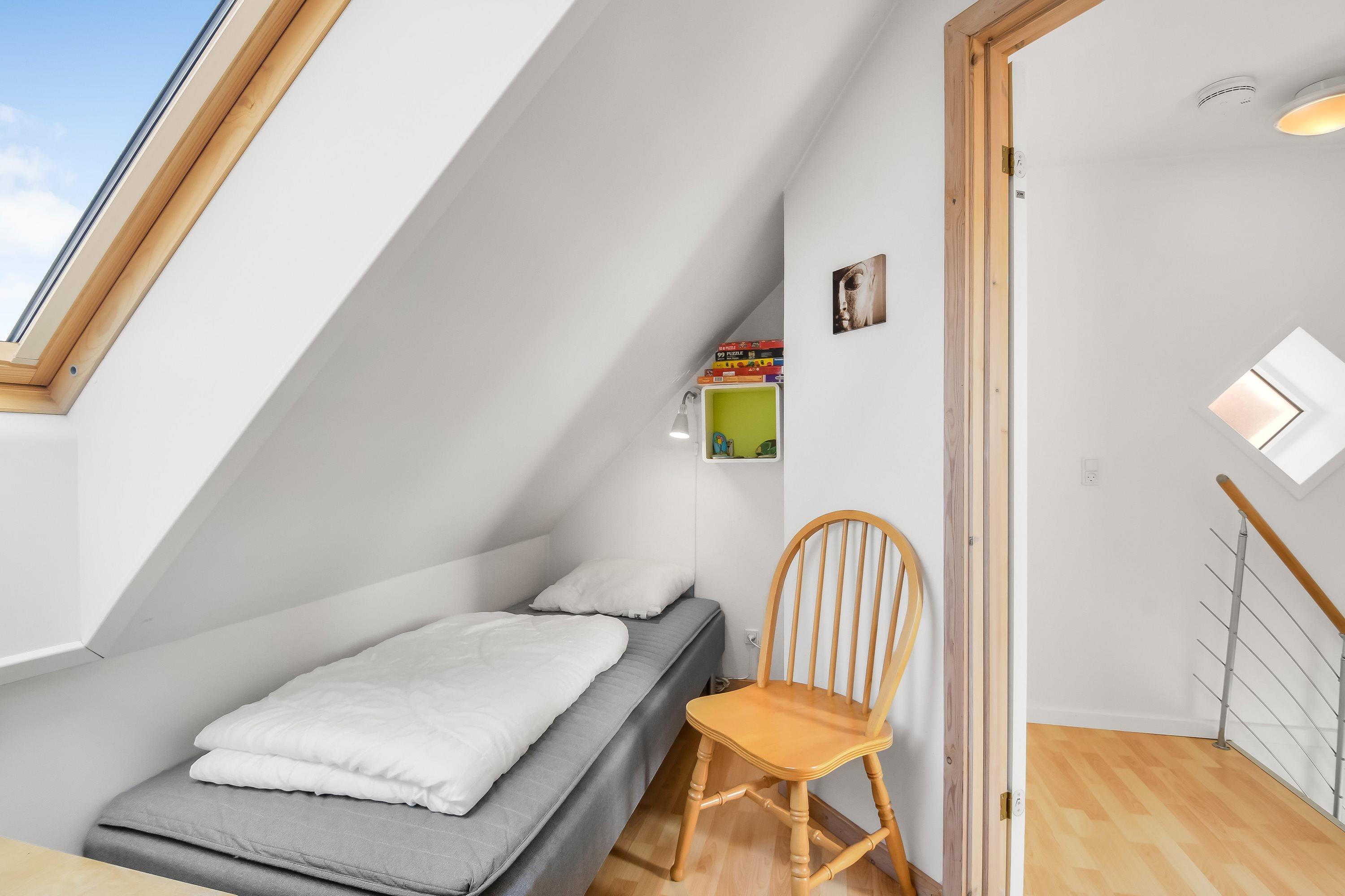 Über die Treppe gegenüber dem Wohnraum kommen Sie zum 1. Stock; hier gibt es 2 Schlafräume: 1DB + 2B.