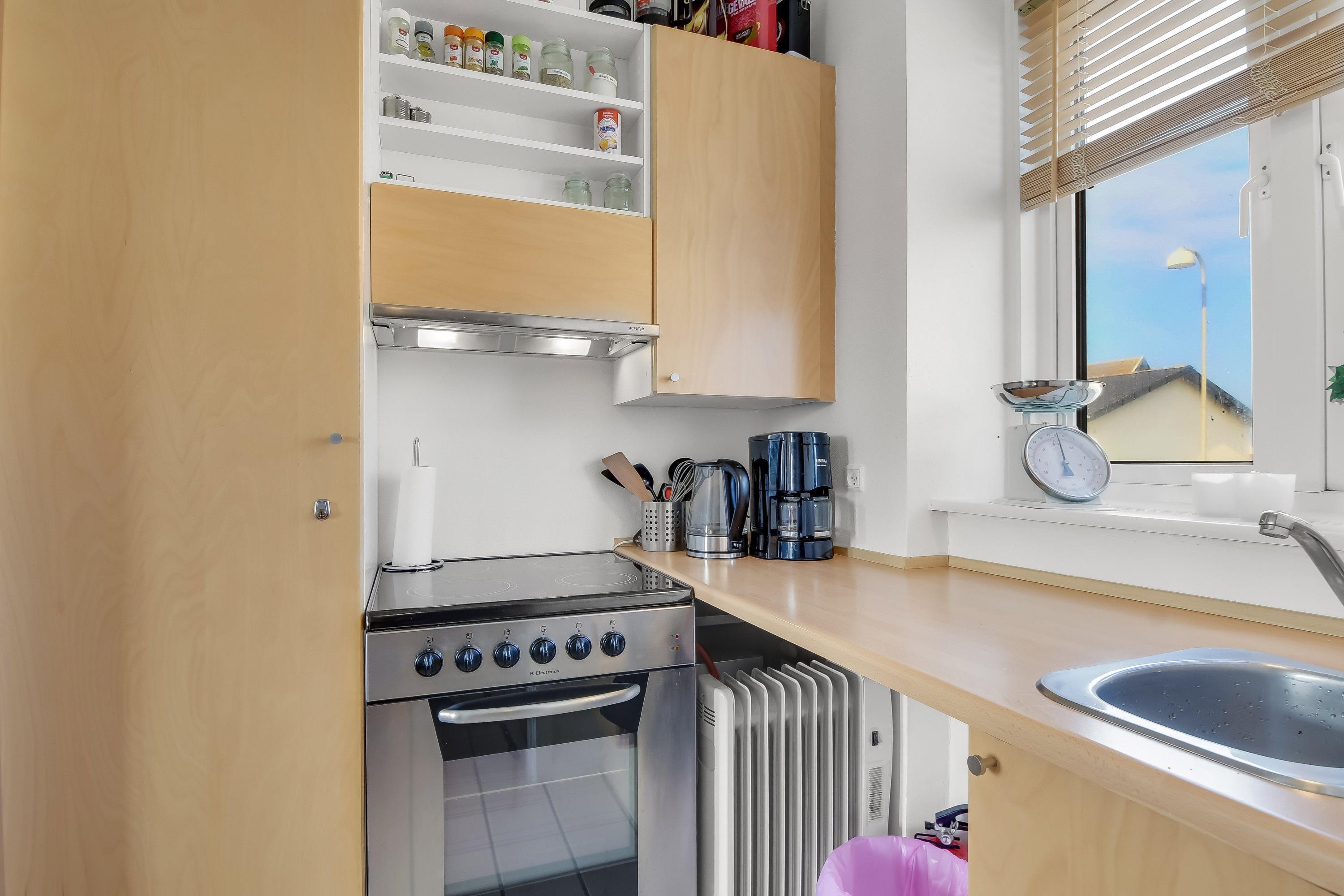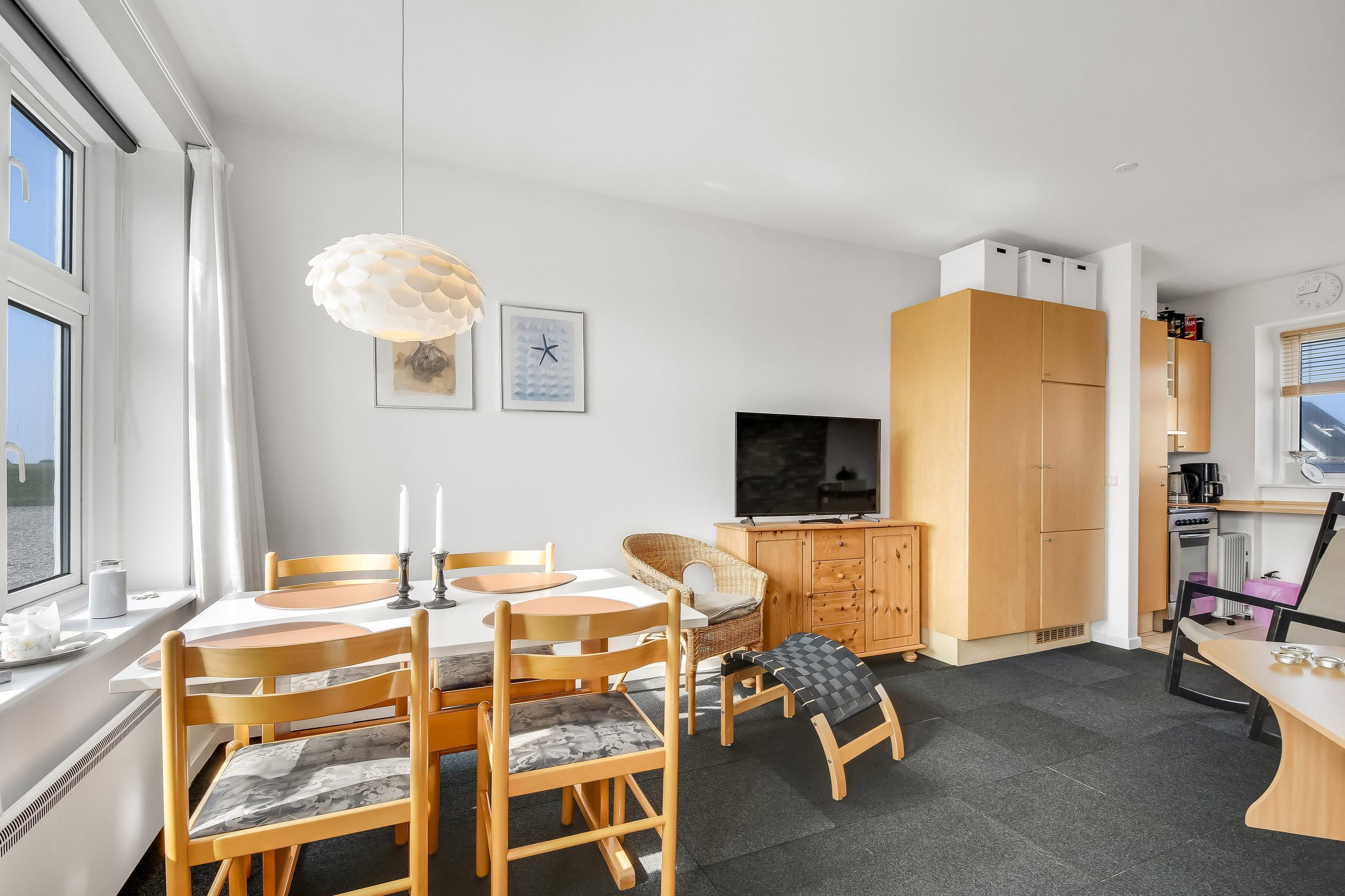 Sehr funktional eingerichtet. Kombinierte Küche-/Wohnraum. Wohnraum mit Polstercouch, Farb-TV mit dänischen und deutschen Programmen und DVD-Player. Küchenecke mit Herd mit Cerankochfeld, Abzugshaube, Mikrowelle und Kühlschrank. Badezimmer mit Toilette, Dusche, Waschbecken und Fliesenboden. Max. 1 Haustier ist erlaubt. Nichtraucher-Haus.