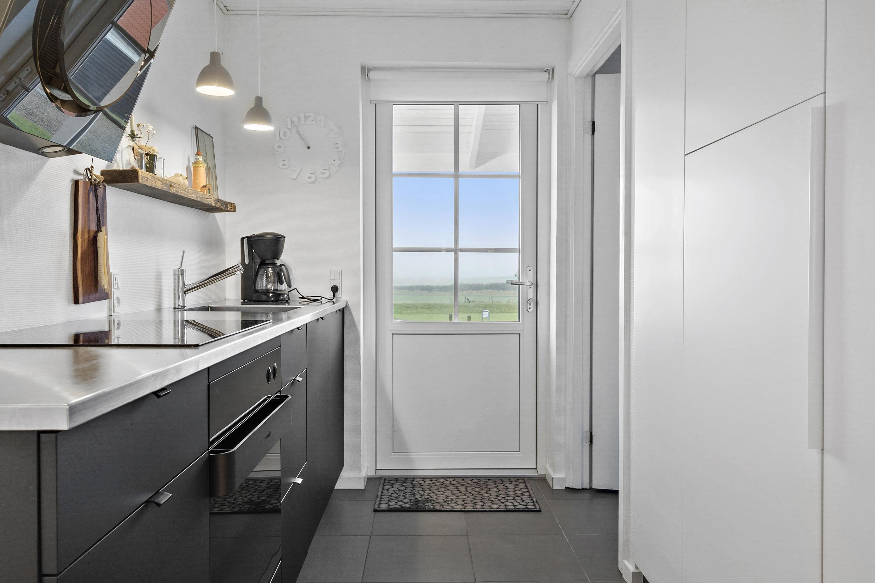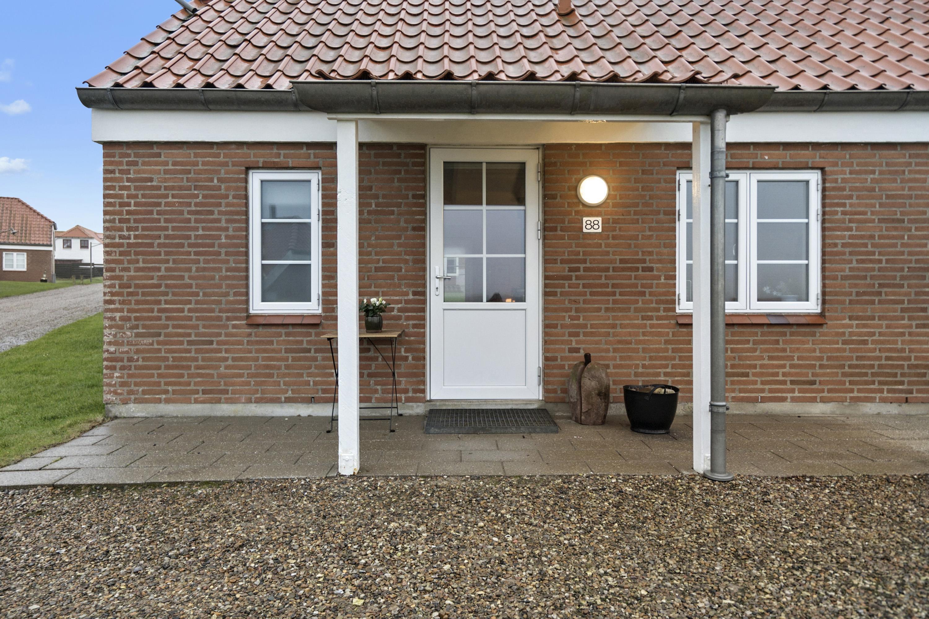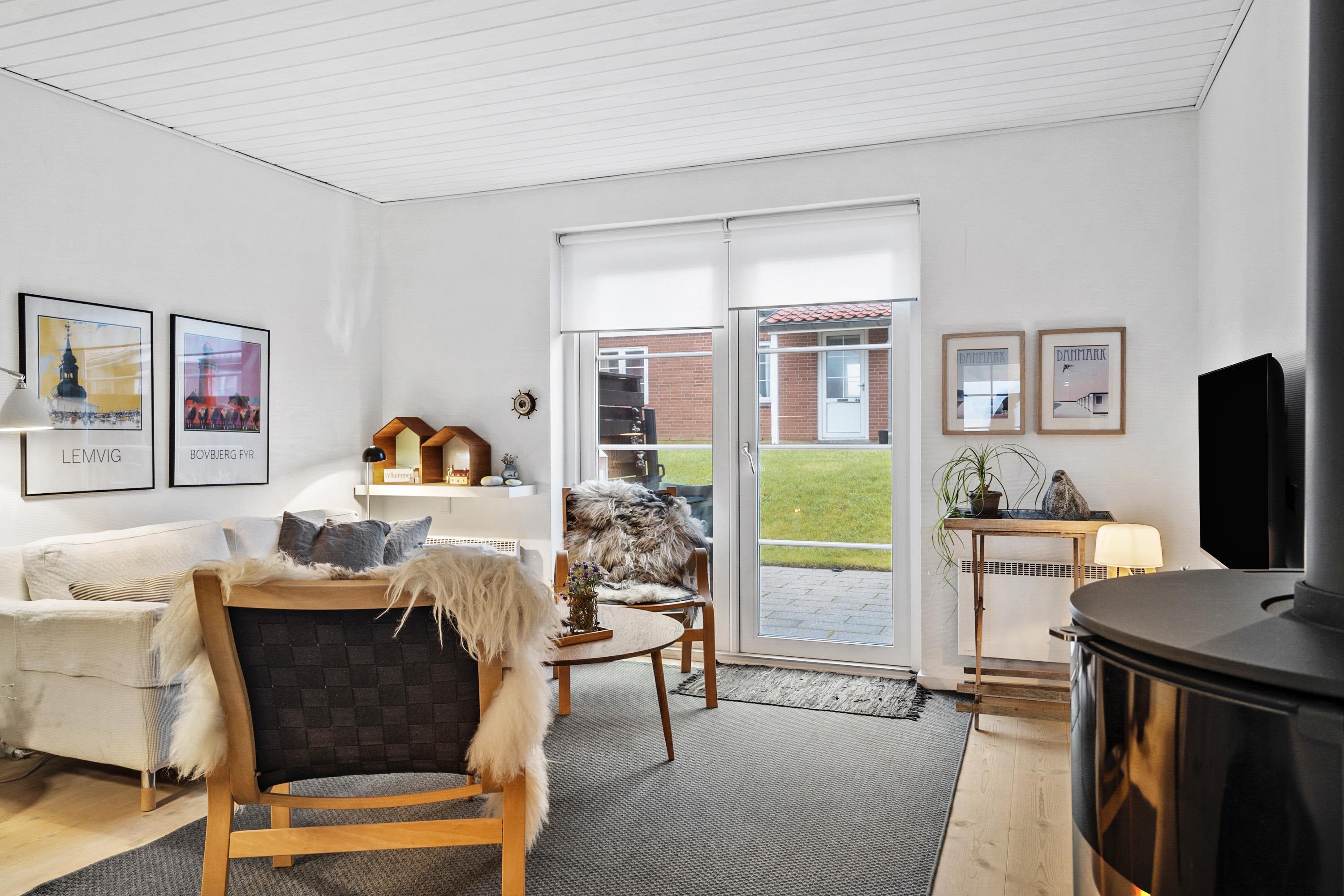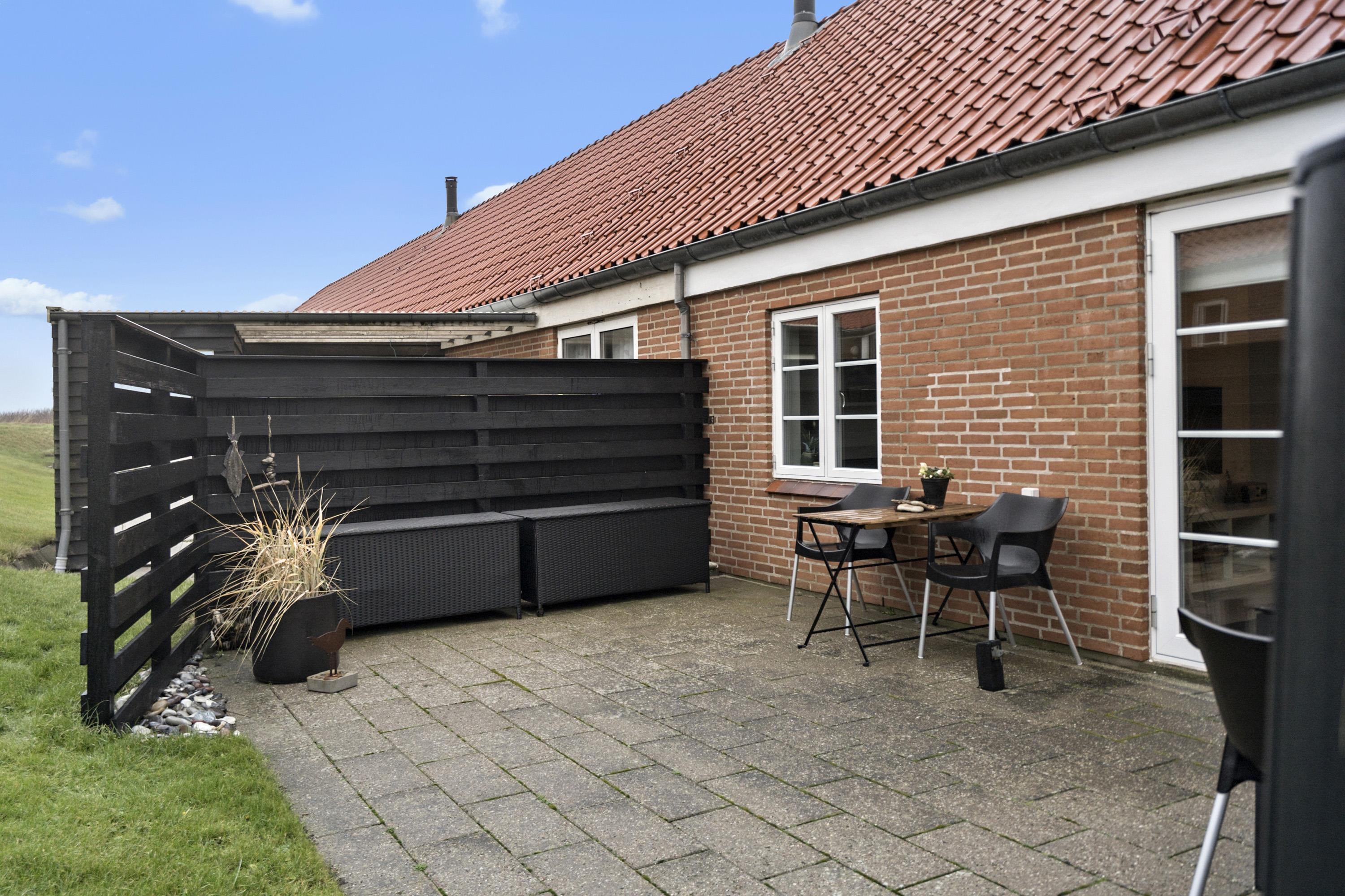 Vom Wohnzimmer aus gelangt man auf eine Terrasse mit Gartenmöbeln, von der aus man einen schönen Blick auf die Umgebung genießen kann. Das Reihenhaus hat eine fantastische Lage in der Nähe des Bovbjerg Leuchtturms, des Jens-Søndergaard-Museums und ist nur 300 Meter von der beeindruckenden Bovbjerg Steilküste an der Nordsee entfernt.