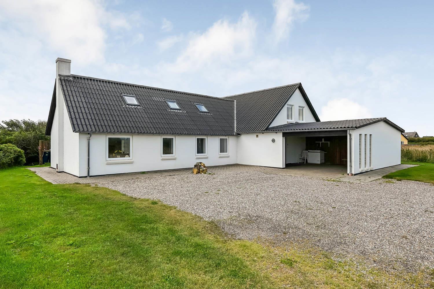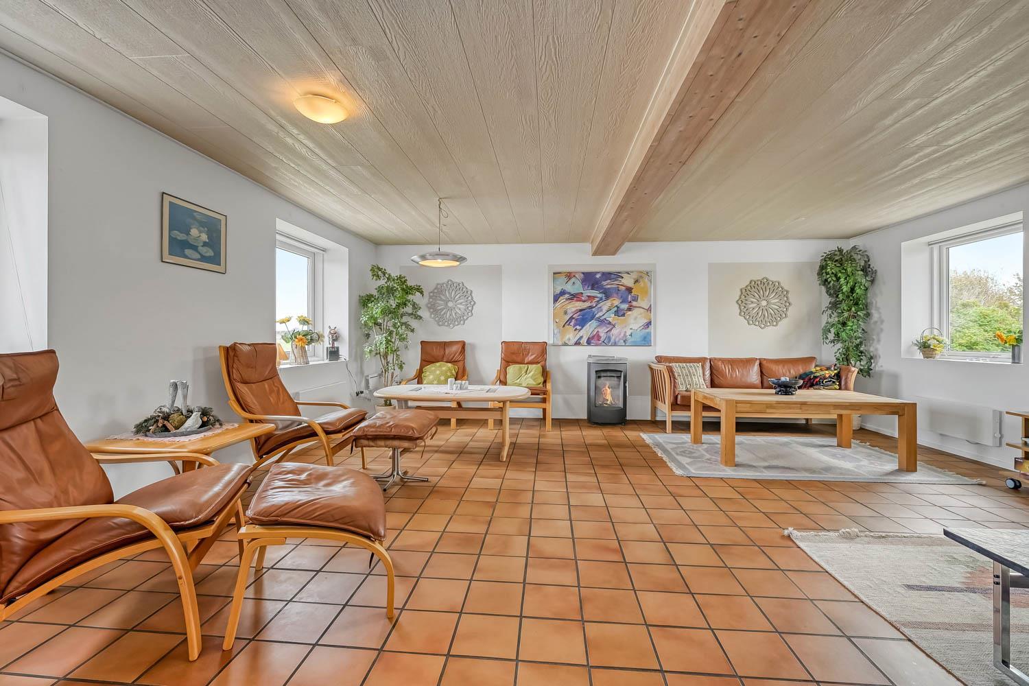 Das Haus wurde 1965 erbaut. 2015 wurde eine große Renovierung durchgeführt und dann wurde das Haus bis 2019 kontinuierlich renoviert. Betreten Sie den großen Parkplatz direkt am Haus oder parken Sie das Auto im Doppelcarport,der auch zum Grillen ideal geeignet ist. Eine große Eingangshalle mit viel Platz und Stellfläche heißt Sie herzlich willkommen. Von Eingangsberch gelangt man in die verschiedenen Wohnbereiche. Das Wohnzimmer ist geräumig und es gibt viel Platz für die ganze Familie, egal ob sie den hauseigenen Flachbildfernseher mit deutschen und dänischen Programmen nutzen oder eine DVD anschauen möchten. CDs können auch abgespielt werden und natürlich gibt es auch ein Radio. Tolle Ledermöbel und Ledersessel, die auch zu einem Sofa zusammengestellt oder separat verwendet werden können. Der Esstisch befindet sich in der Nähe der Küche, die durch eine schöne, offene, gemauerte Wand mit Rundbogen abgetrennt ist. Die gemütliche Landhausküche ist gut ausgestattet. Sie verfügt über einen Herd mit Glaskeramikkochfeld, Dunstabzugshaube, Kühlschrank mit Gefrierfach, Mikrowelle und Geschirrspüler und einen Ausgang zur Terrasse. Alles sehr gut platziert, um das Essen außen oder innen auf den Tisch zu bringen. Sowohl der Eingangsbereich, das Wohnzimmer als auch die Küche sind mit praktischen Fliesen mit Fußbodenheizung belegt. Ein Kaminofen und eine Wärmepumpe sorgen für Gemütlichkeit und Wärme. Vom Eingangsbereich gibt es einen Zugang zu einem Schlafraum - das Hauses hat insgesamt 5 Schlafräume - Zugang zum Bad mit WC, Waschbecken, Dusche und Fliesenboden mit Fußbodenheizung. Nichtraucher-Haus. Wasser- und Energiekosten betragen wöchentlich im Sommer ca. DKK 400 bis DKK 800 und im Winter ca. DKK 1800 bis DKK 2.500 je nach Wetterlage. Wenn Sie ein Elektroauto oder einen Plug-in-Hybrid haben, verfügt das Haus über eine Ladegerät, Type 2 die bis zu 11 kWh aufladen kann.