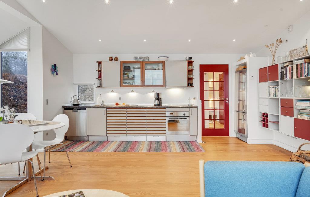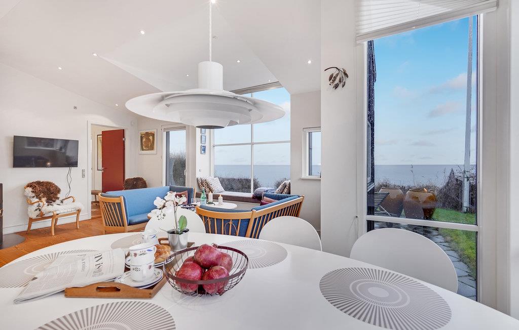 Freuen Sie sich auf einen entspannten Familienurlaub in diesem hellen und lichtdurchfluteten Ferienhaus. Kommen Sie mit Ihren Lieben hier an und fühlen sich direkt wohl. Der Wohnraum mit großen Fenstern bietet Ihnen einen großartigen Blick nach draußen und auf das Meer. Befeuern Sie den Ofen und setzen Sie sich mit einem guten Buch auf die Fensterbank und genießen das Ambiente. Sie können in diesem großen Raum aber auch zusammen kochen, spielen oder einen guten Film schauen.