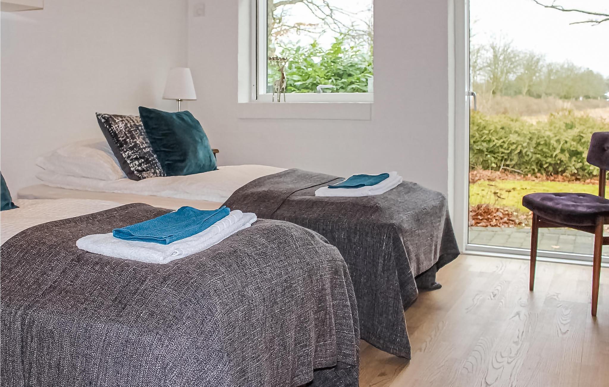 Es ist die Rede von einem ehemaligen Gehöft, welches Ihnen und Ihrer Familie oder Freunden richtig viel Platz für Ihren Urlaub bietet. Das mit Fliesen ausgelegte Haus und gemütlicher Einrichtung lädt ein es sich auf der Sofagarnitur mit einem Roman gemütlich zu machen, in der großen modernen Küche das Frühstück zuzubereiten oder sich einem Kartenspiel auf dem großen Esstisch in einer großen Fensterbucht zu widmen. Dieses Haus liegt auf einem riesigen Grundstück auf dem Sie sich frei bewegen können, sowie eine Terrasse und ein Grill für gemütliche Sommerabende steht Ihnen zur Verfügung. Am nächsten ist die Ortschaft Brande, mit Lebensmittelgeschäften und Restaurants. Ein Besuch im Naturcenter Harrild Heath zum Wandern und Spazieren ist ein tolles Ziel für Naturliebhaber. Des weiteren gäbe es auch noch Legoland Billund, der Freizeitpark Naturkraft und das AQUA Süßwasseraquarioum Tierpark .