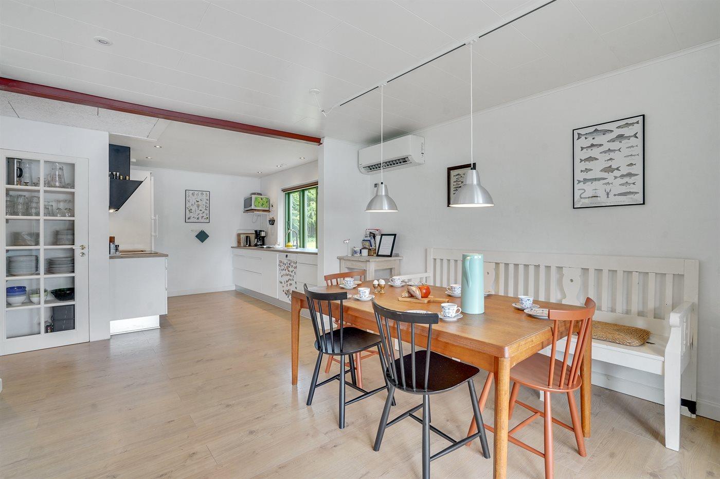 Innen tritt das Haus nach einer umfassenden Renovierung (2021) hell und freundlich hervor und es gibt u. a. eine neue Küche, ein neues Badezimmer u. a. m.