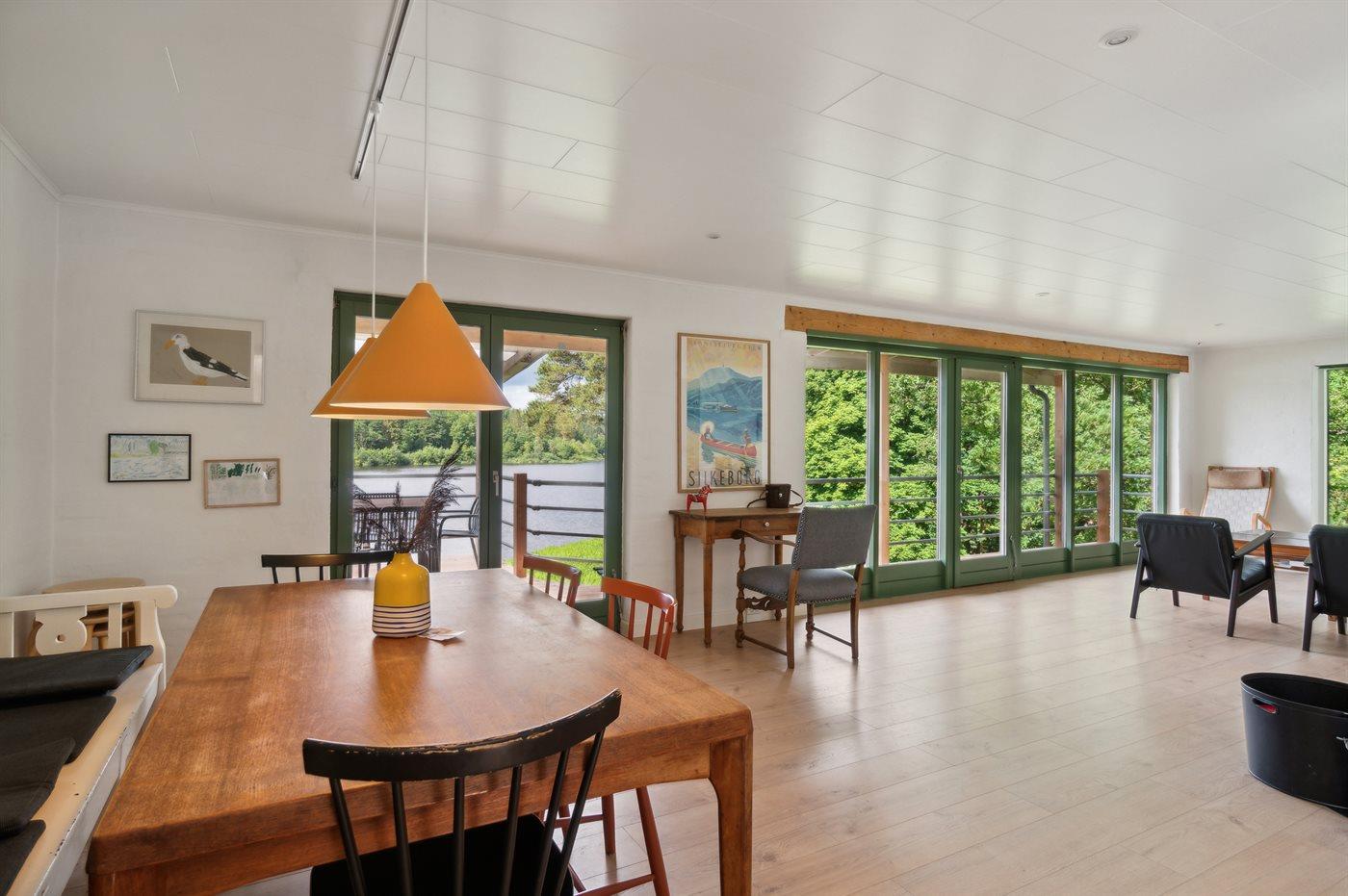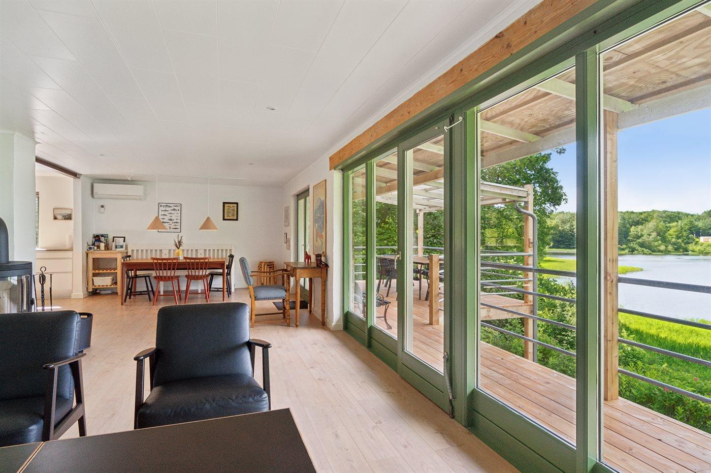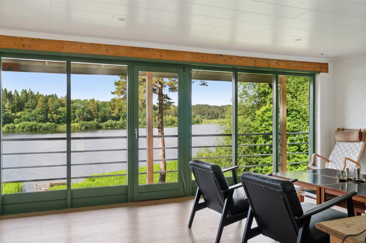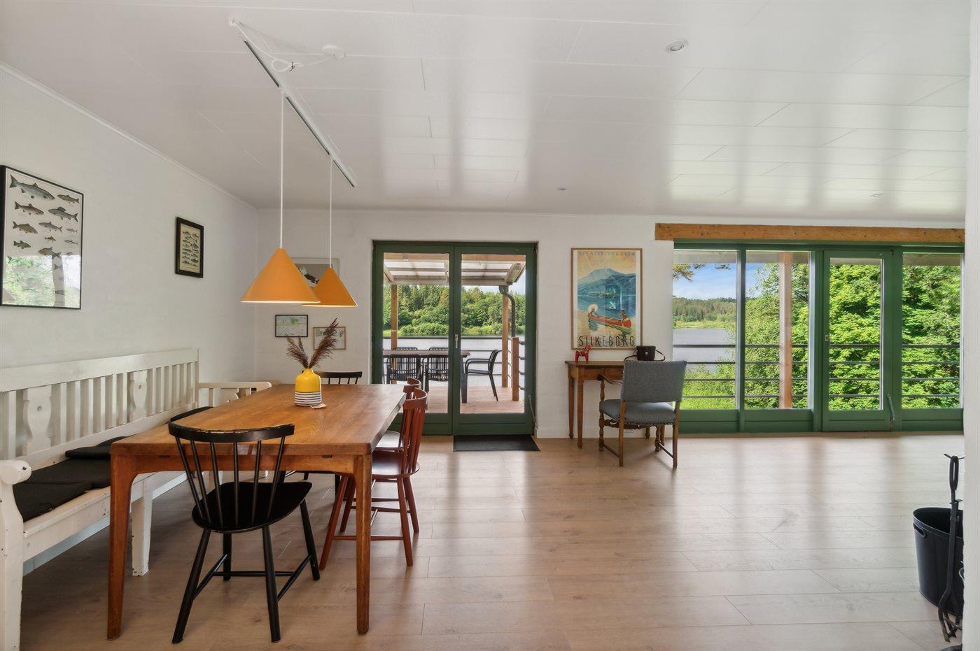 Ein traumhaft gelegenes Sommerhaus - direkt am See, im eigenen Wald und weit vom nächsten Nachbarn entfernt. Vom großen und ungestört gelegenen Grundstück sowie vom Wohnzimmer, der Küche und von mehreren der Schlafzimmer hat man Panoramablick auf den See – eine bessere Lage ist ganz einfach schwer zu finden.