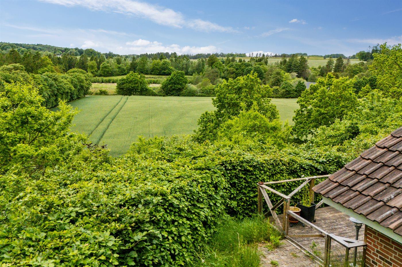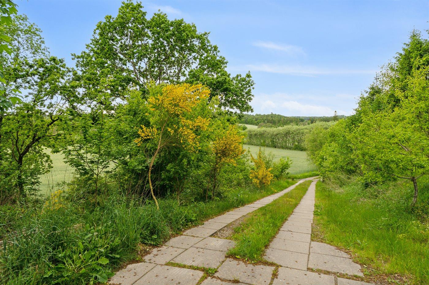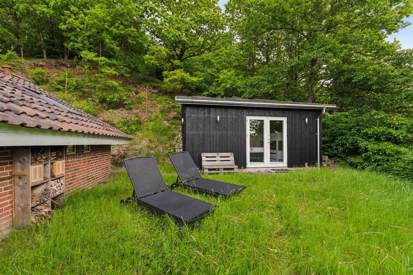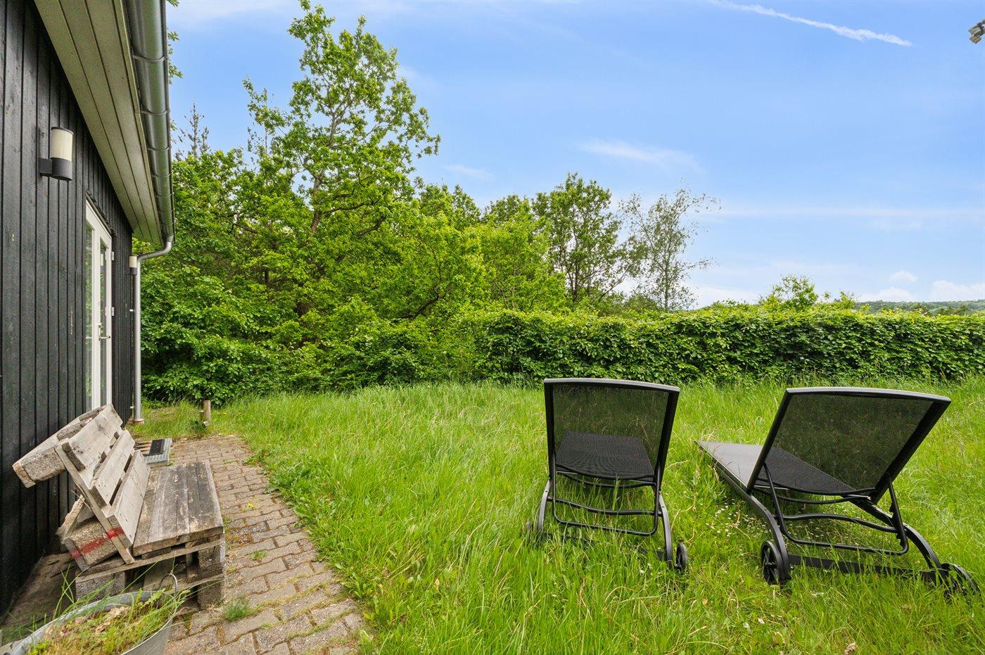 Das Grundstück ist groß und leicht hügelig, weshalb es hinter dem Haus einen tollen Aussichtspunkt gibt, wo eine Bank aufgestellt ist. Hier kannst du, als etwas ganz Besonderes, die Aussicht auf die wunderschöne und friedliche Natur genießen.