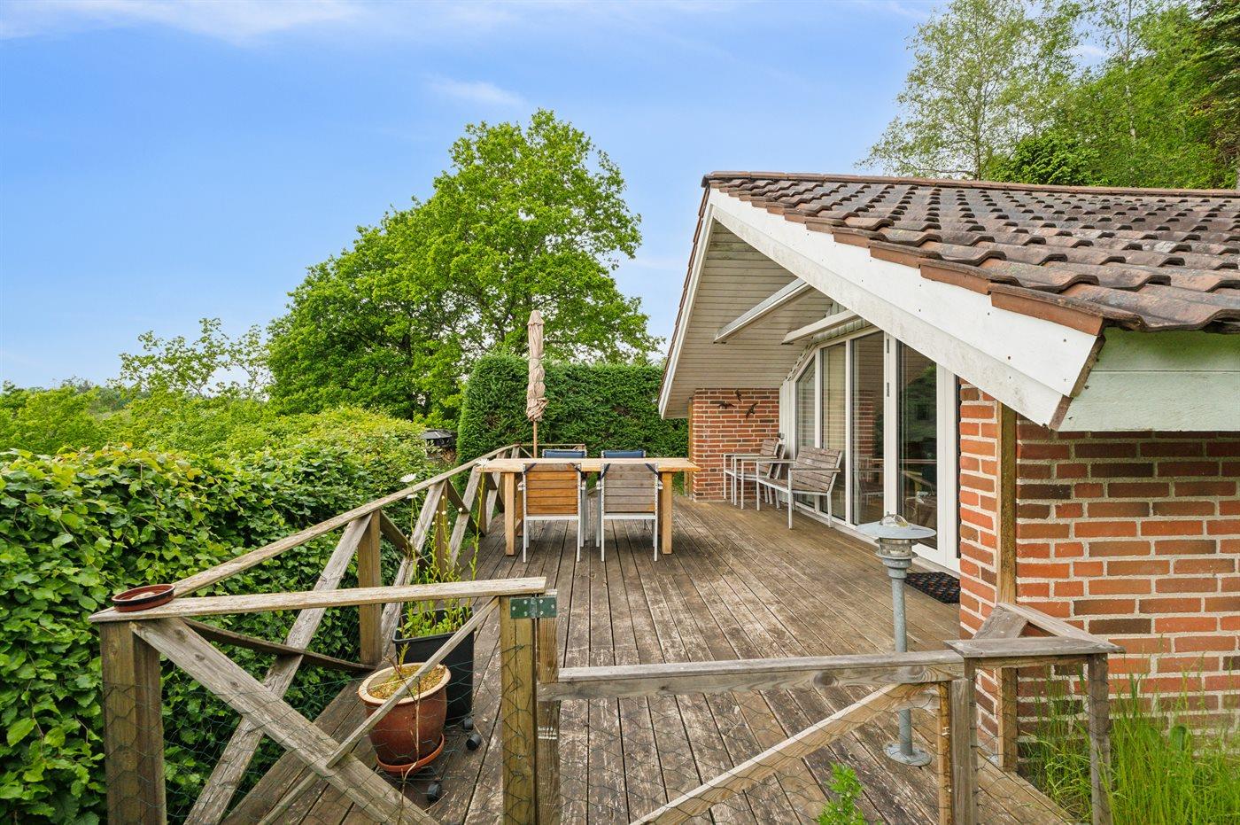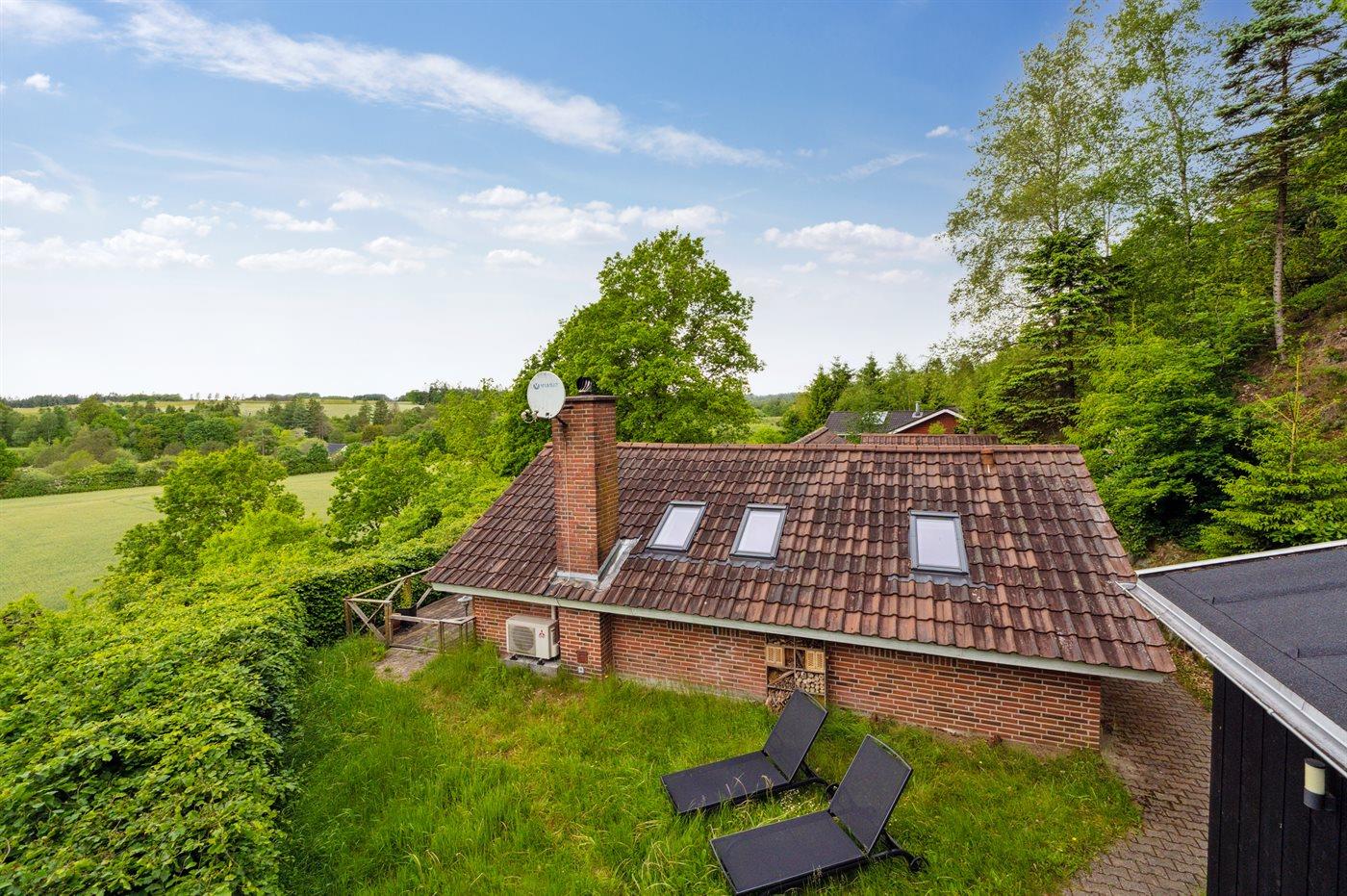 Modernes Ferienhaus in Brædstrup mit großer Terrasse und atemberaubendem Naturblick.