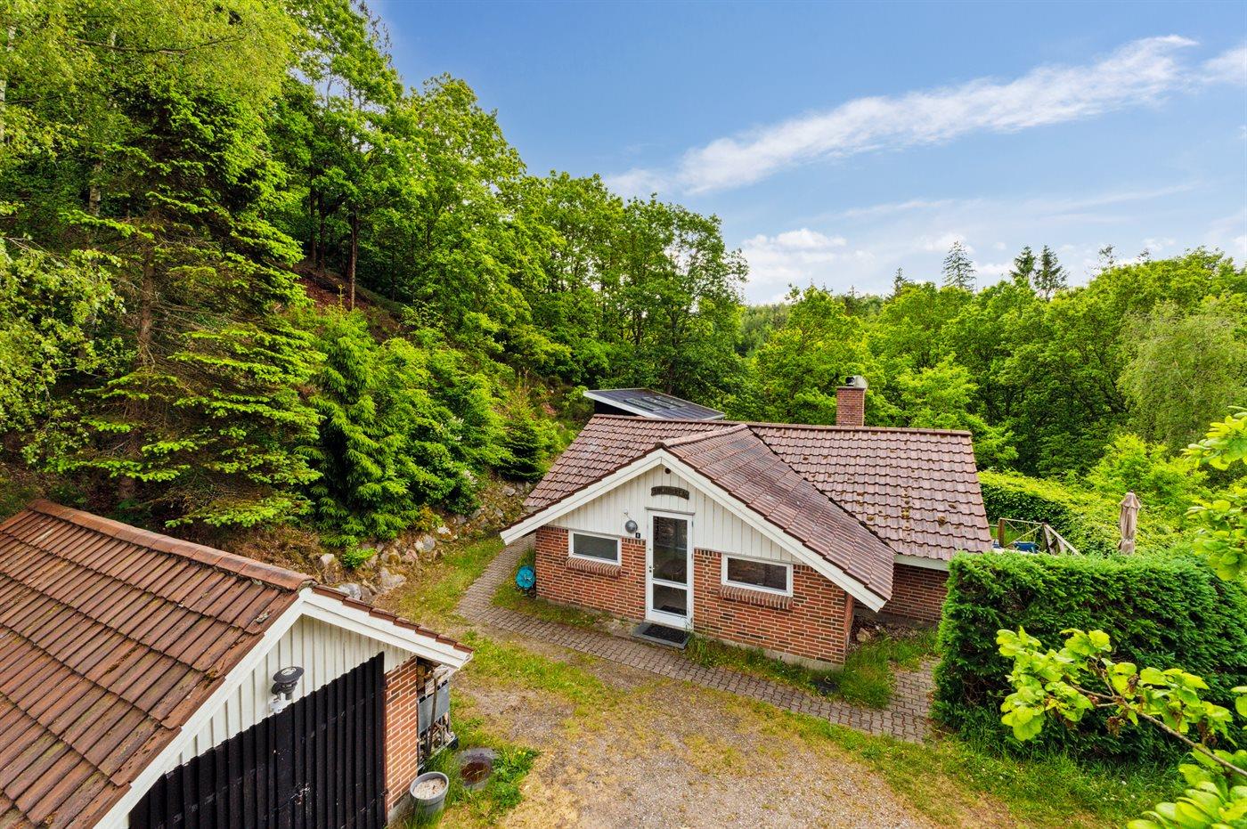 Mitten in der wunderschönen Natur, südlich von Karlsø, liegt dieses schöne und sehr gepflegte Ferienhaus. Das Ferienhaus liegt ungestört auf einem 2310 m² großen Naturgrundstück. Der Ausblick von der schönen Terrasse und auch vom Inneren des Hauses aus ist atemberaubend – hier fühlst du dich wirklich im Einklang mit der Natur.