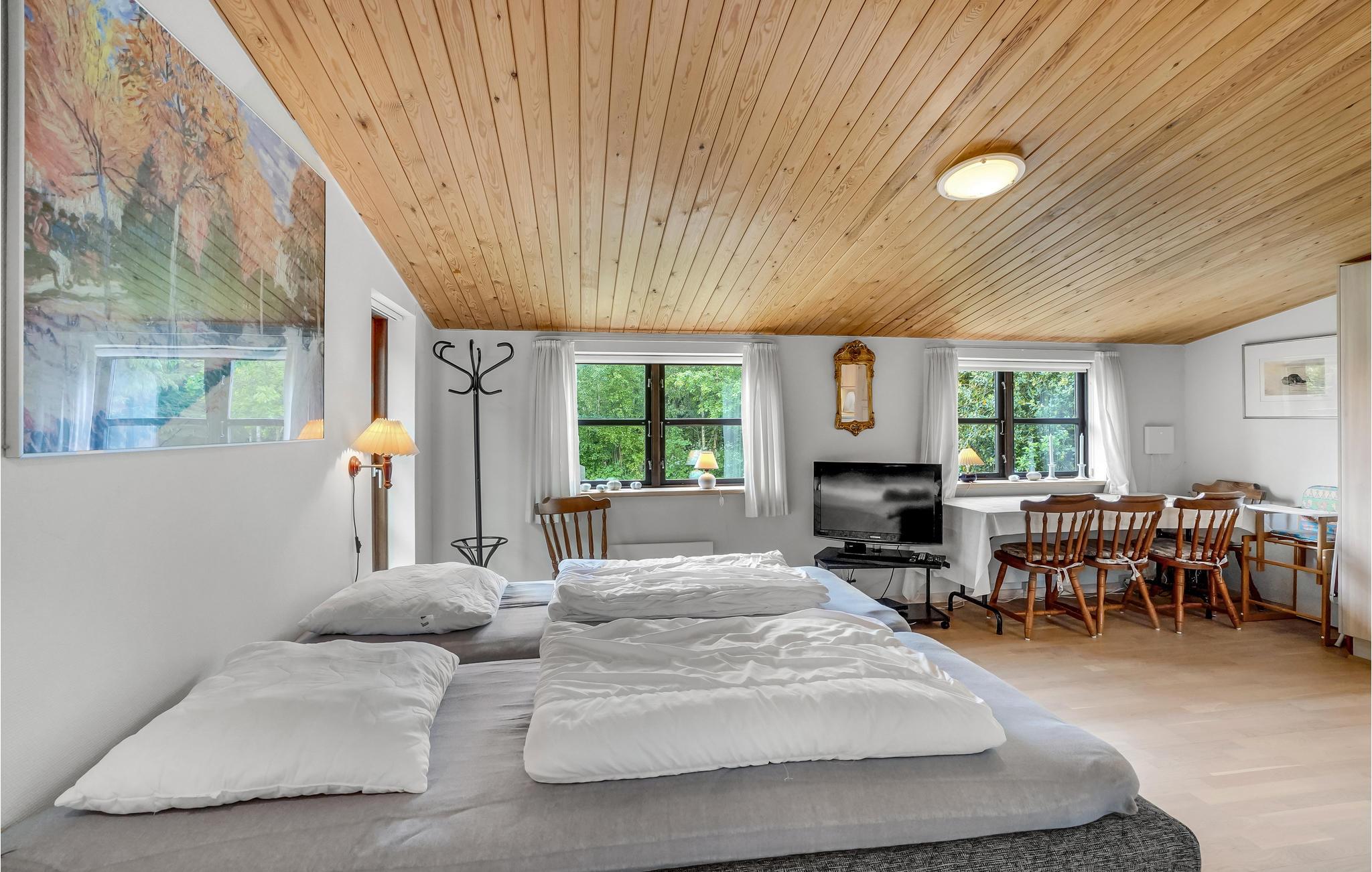 Unglaubliches Ferienhaus, in einem einzigartigen Ferienhausgebiet, auf einem riesigen Grundstück. Auf dem Grundstück finden Sie auch einen kleinen See, kleine Pfade führen Sie an Obst- und Nadelbäumen vorbei, und vielleicht sehen Sie sogar einen Hasen oder ein Reh. Die Größe des Grundstücks sorgt dafür, dass Sie hier ungestört sind. Zum Haus gehört ein Wintergarten, in dem Sie es sich gemütlich machen können, wenn es im Freien zu frisch ist. Ein wahres Juwel für Naturliebhaber, mitten im Nationalpark Thy, wo Sie wandern, Rad fahren, angeln, reiten und sogar auf Wildnissafari gehen können.