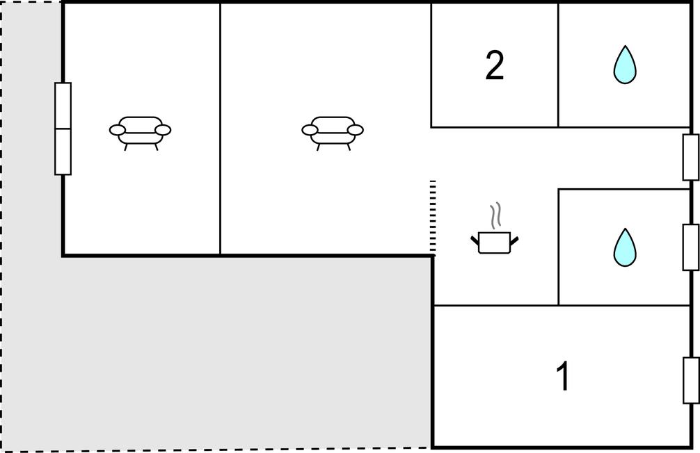 Badezimmer 10m2 (nr. 1) - WC. Warmes und kaltes Wasser. Dusche