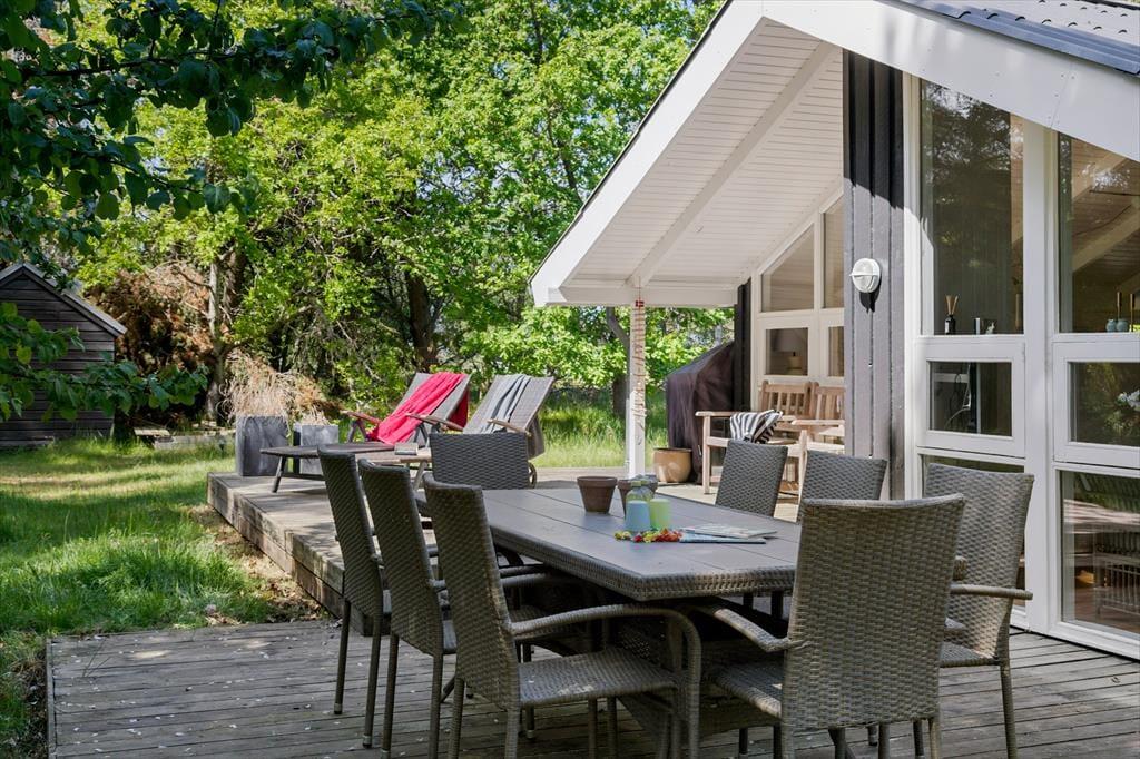 Das Ferienhaus liegt auf einem großen, uneinsehbaren Grundstück, das viel Platz für Entspannung und Spiel bietet. Beginnen Sie den Tag mit einer Tasse Kaffee auf der Terrasse, während Sie den Vogelgesang und die frische Meeresluft genießen. Später können Sie mit der Familie einen gemütlichen Grillabend unter freiem Himmel veranstalten, während die Kinder auf der Wiese spielen. Falls Sie Ihren vierbeinigen Freund mitbringen, wird er sich bestimmt über das großzügige Gelände freuen, auf dem er frei herumschnüffeln kann. Die idyllische Umgebung lädt zu Erkundungstouren auf Waldwegen, Radtouren oder einfach nur zum Genießen der Ruhe fernab vom Alltagsstress ein.