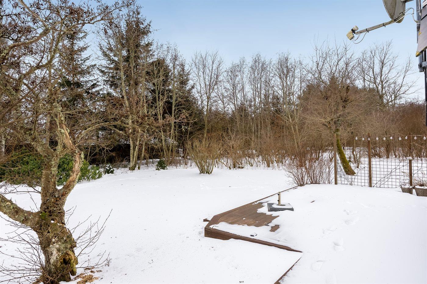 Ein großer Teil des Grundstücks und die eine Terrasse sind eingezäunt.