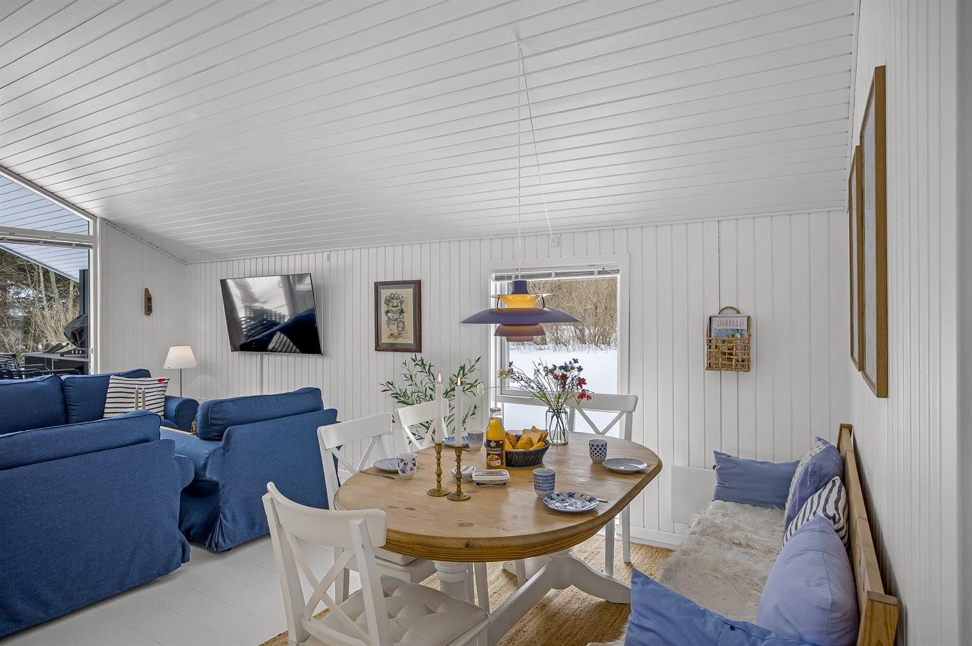 1 Smart-TV. 1-3 dänische Fernsehsender. 1-3 deutsche Fernsehsender. Es steht kabellose Internetverbindung zur Verfügung.