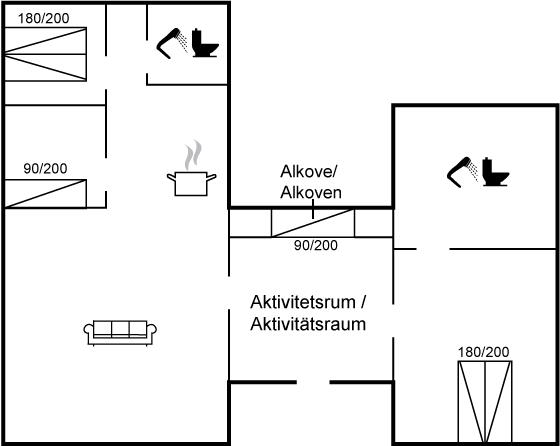 Keine Vermietung an Jugendgruppen, in denen alle 15-25 Jahre sind. Rauchen ist nicht zugelassen. Bei Nichtbeachtung dieses Verbots wird eine Gebühr von mindestens EUR 420,- erhoben. En av dobbeltsengene er én stor seng, så husk å ta med laken til den (180×200).