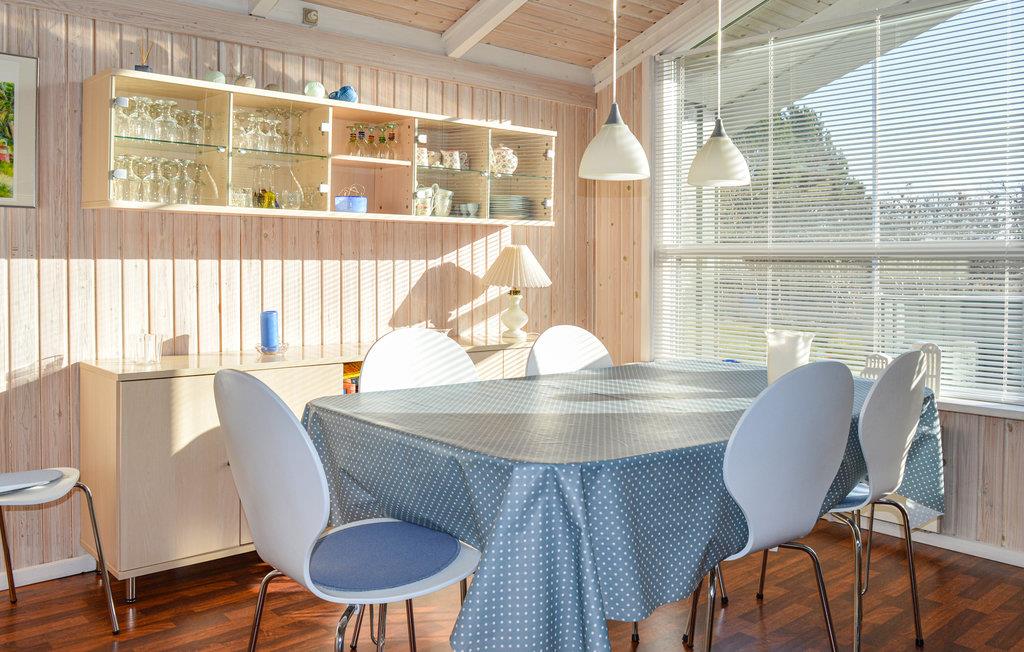 Im herrlich schönen Råbjerg und sehr nahe am Golfplatz Hvide Klit liegt dieses gemütliche Ferienhaus. Es ist praktisch eingerichtet, alles ist hell und einladend. Es gibt eine schöne Wohnküche mit einem Kaminofen, 3 Schlafzimmer und ein Bad, so dass 6 Personen hier ausreichend Platz finden. Im Außenbereich erwarten Sie gute Terrassenareale, auf denen Sie vom Wind geschützt sind, so dass Sie sich jederzeit hier gut aufhalten, essen und entspannen können.